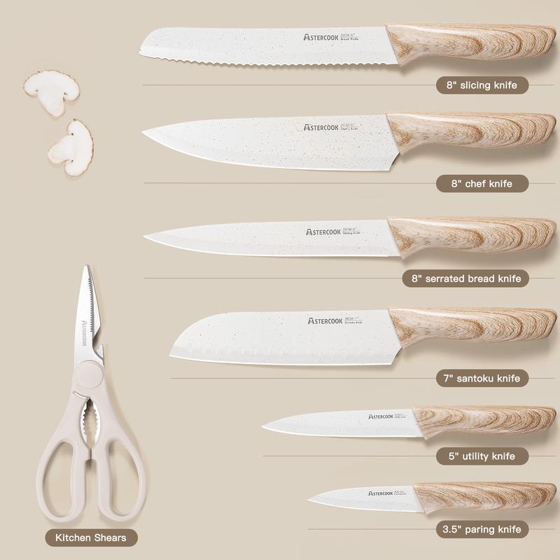 Elevate your kitchen experience with the Astercook 7-Piece Kitchen Knife Set. This set is designed for functionality and practicality, making it an essential addition to your kitchen. It includes a variety of knives, perfect for all your kitchen needs.