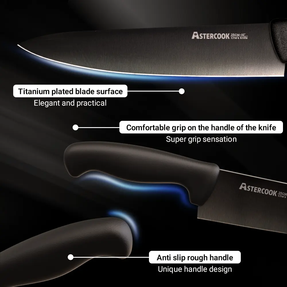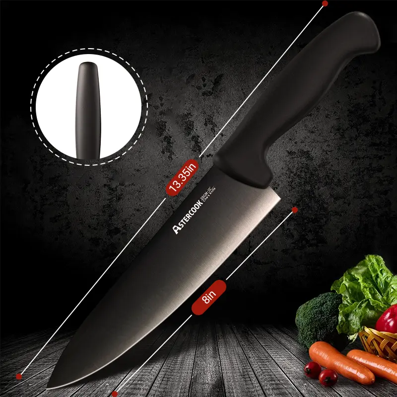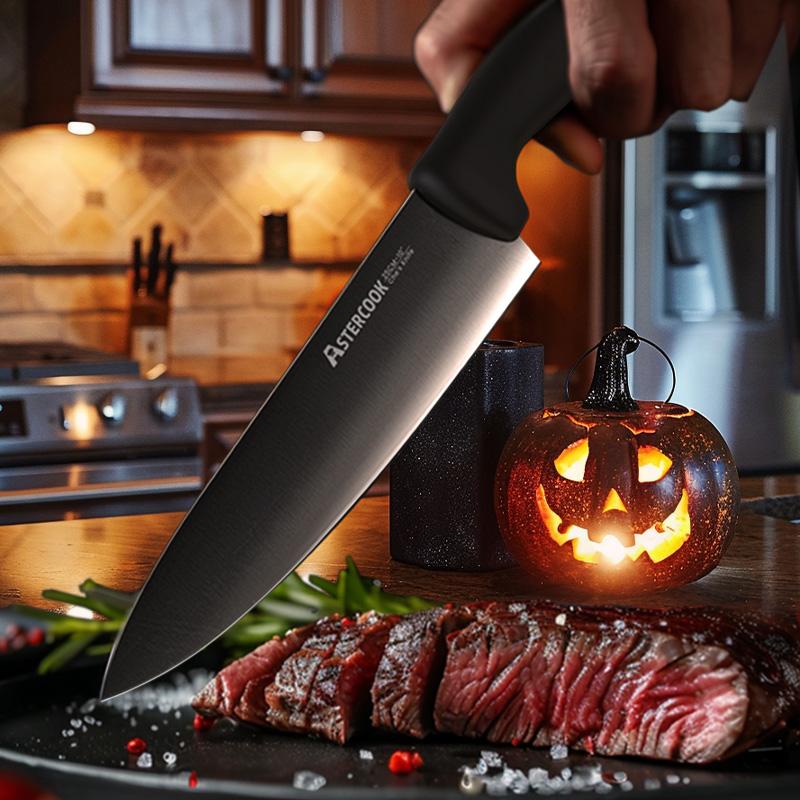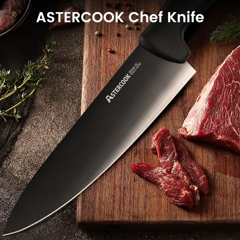 5. Astercook 8-inch single knife - multi-purpose cutting tool - professional cutting tool - kitchen titanium-coated handsome chef's knife, suitable for camping and picnics, a good helper for home kitchen cooking