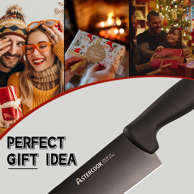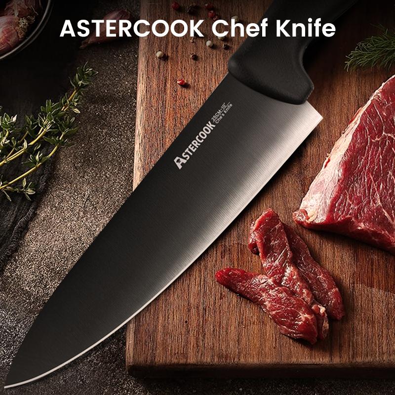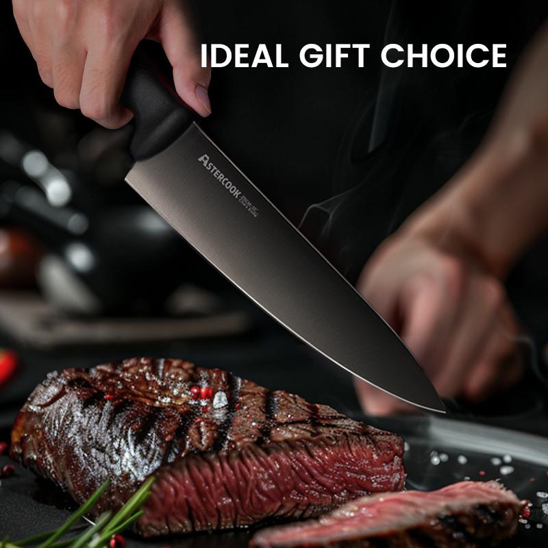 Astercook 8-inch single knife - multi-purpose cutting tool - professional cutting tool - kitchen titanium-coated handsome chef's knife, suitable for camping and picnics, a good helper for home kitchen cooking