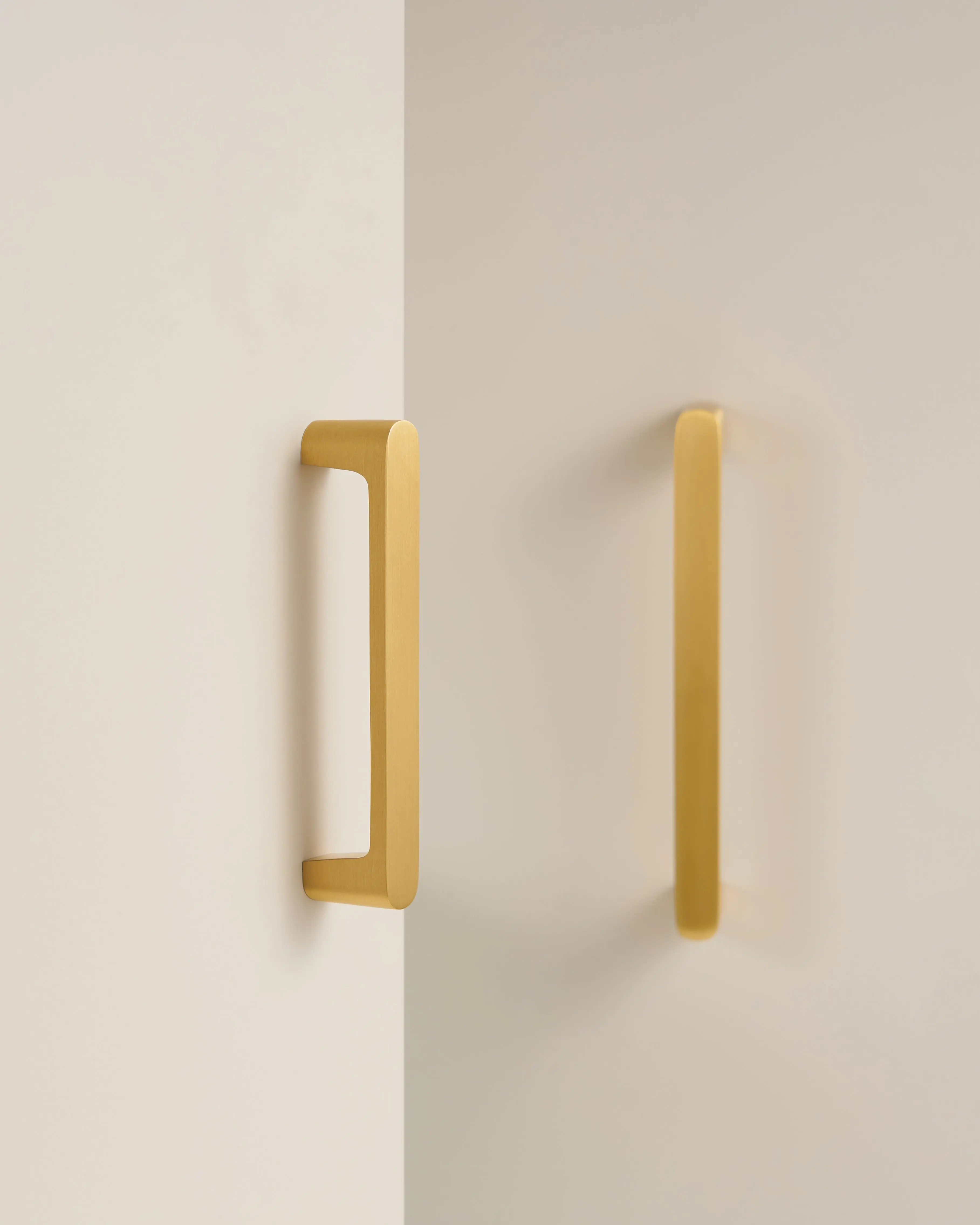 The Astor Cabinet Pull captures the essence of modern luxury through refined geometry and understated elegance. Featuring a gently rounded L-bar shape with softened corners and a seamless matte finish, it delivers a clean, contemporary silhouette that adds quiet sophistication to any cabinetry. The Brushed Brass finish brings a warm metallic glow, perfect for kitchens, bathrooms, or custom-built furniture.