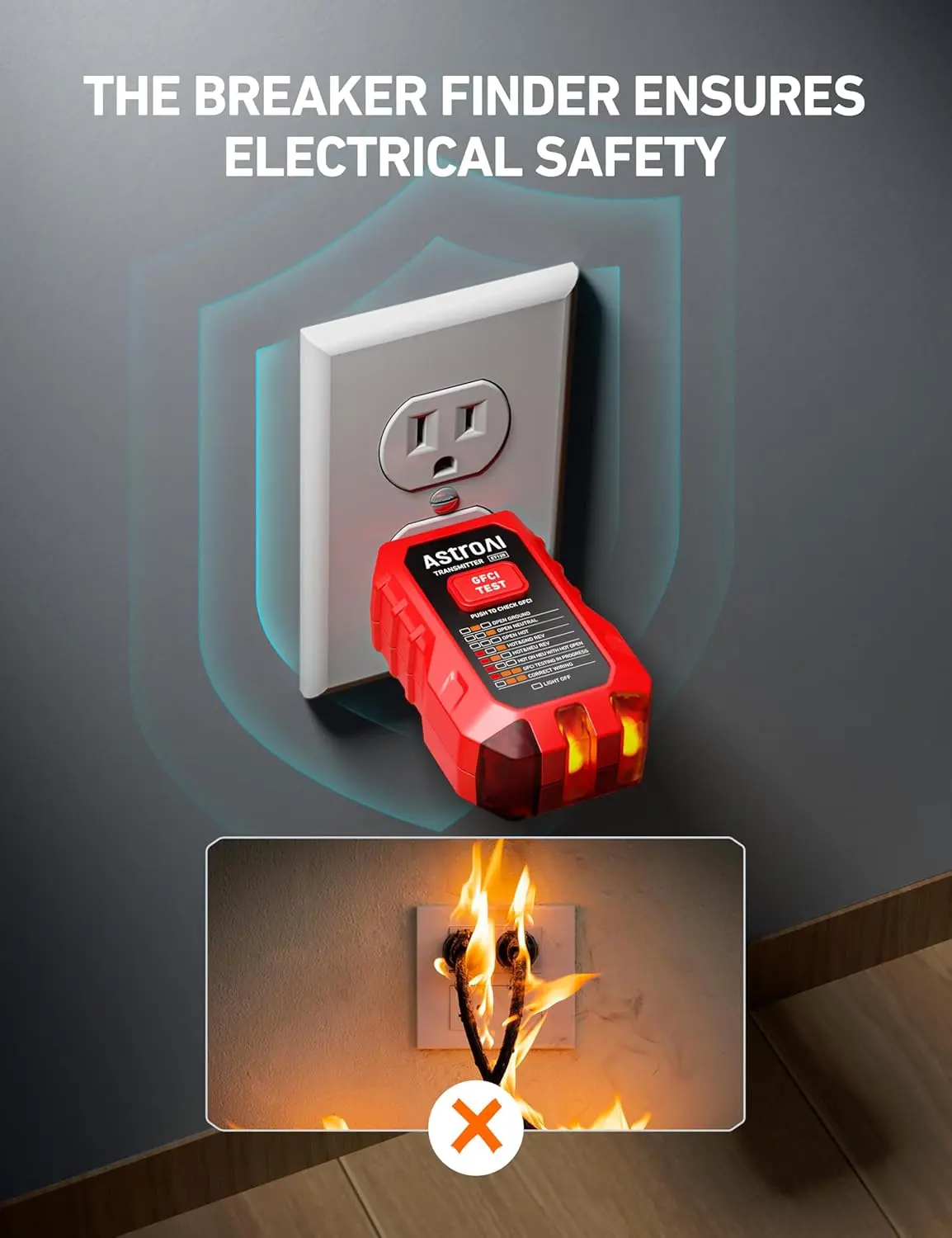·Two-Part Circuit Tester: Simply plug the Transmitter into an outlet or light socket, then scan your breaker panel with the Receiver to quickly identify the correct breaker, saving your time and effort.