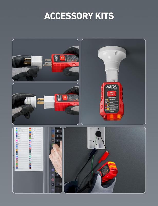 ·Integrated GFCI Tester: Use the outlet tester to check wiring conditions and confirm GFCI functionality, helping ensure reliable electrical safety.