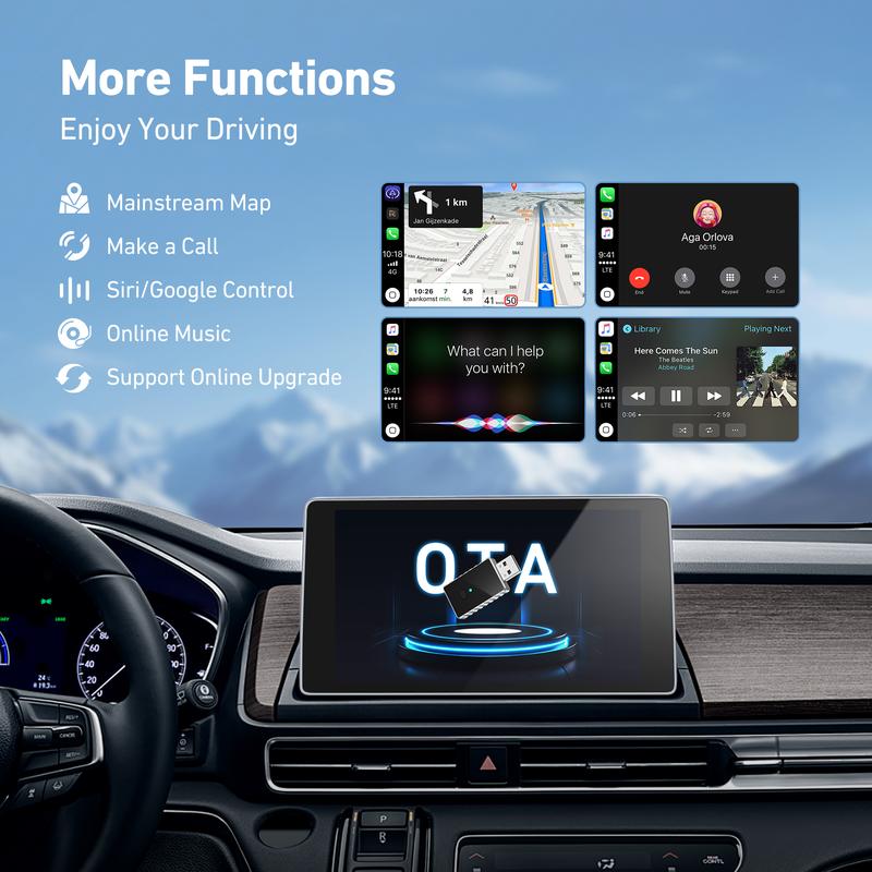 ·Wireless Connection: Converts your car's factory-wired CarPlay or wired Android Auto into seamless wireless connectivity. Say goodbye to tangled cords and enjoy all original CarPlay functions—maps, online music, Siri/Google voice control, and phone calls—completely wirelessly. Effortlessly unlock your wireless native experience.