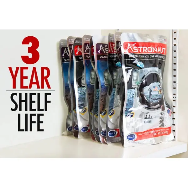 Because it is designed to be stored at room temperature without melting, Astronaut Ice Cream is a perfect snack food for the office, school, train, plane, and even space station (see what we did there?). All Astronaut Ice Creams feature a three year shelf life and are made in the USA.