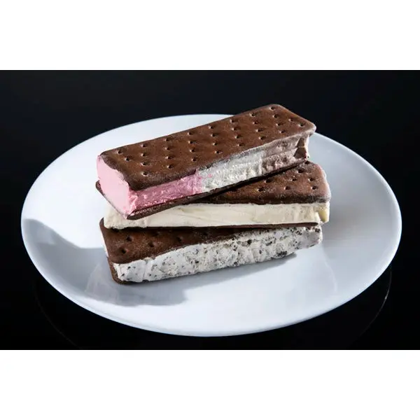 We currently offer four ice cream sandwich flavors: Vanilla, Neapolitan, Mint Chocolate Chip, and Cookies and Cream.