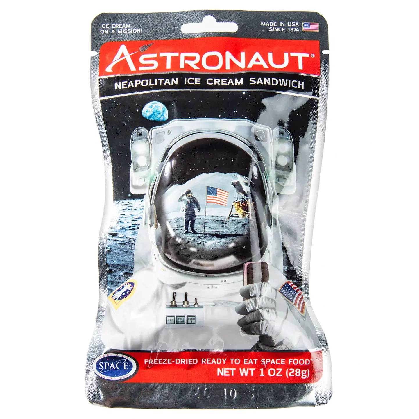 With Astronaut Ice Cream, the search is over! Toss an Astronaut Ice Cream Sandwich into your lunch bag, man-purse, satchel, or portmanteau, and you're all set! This stuff is also great for camping, hiking, and tailgating.