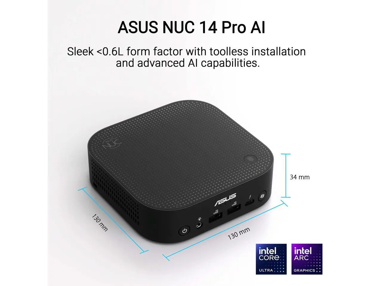 5. Asus NUC 14 Pro AI RNUC14LNKU7099HU Desktop Computer - Intel Core Ultra 7 258V - 32 GB - 1 TB SSD - Mini PC - Black -TAA-compliant - Intel Chip - Windows 11 Home - Intel Arc Graphics 140V LPDDR5X - 12
