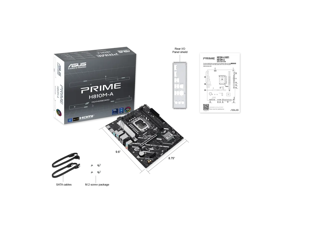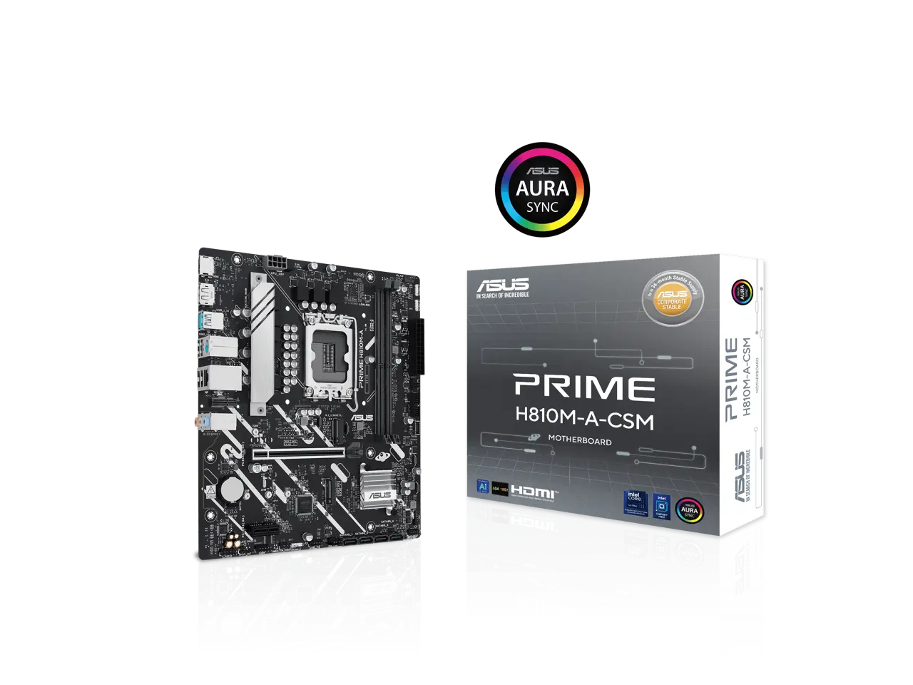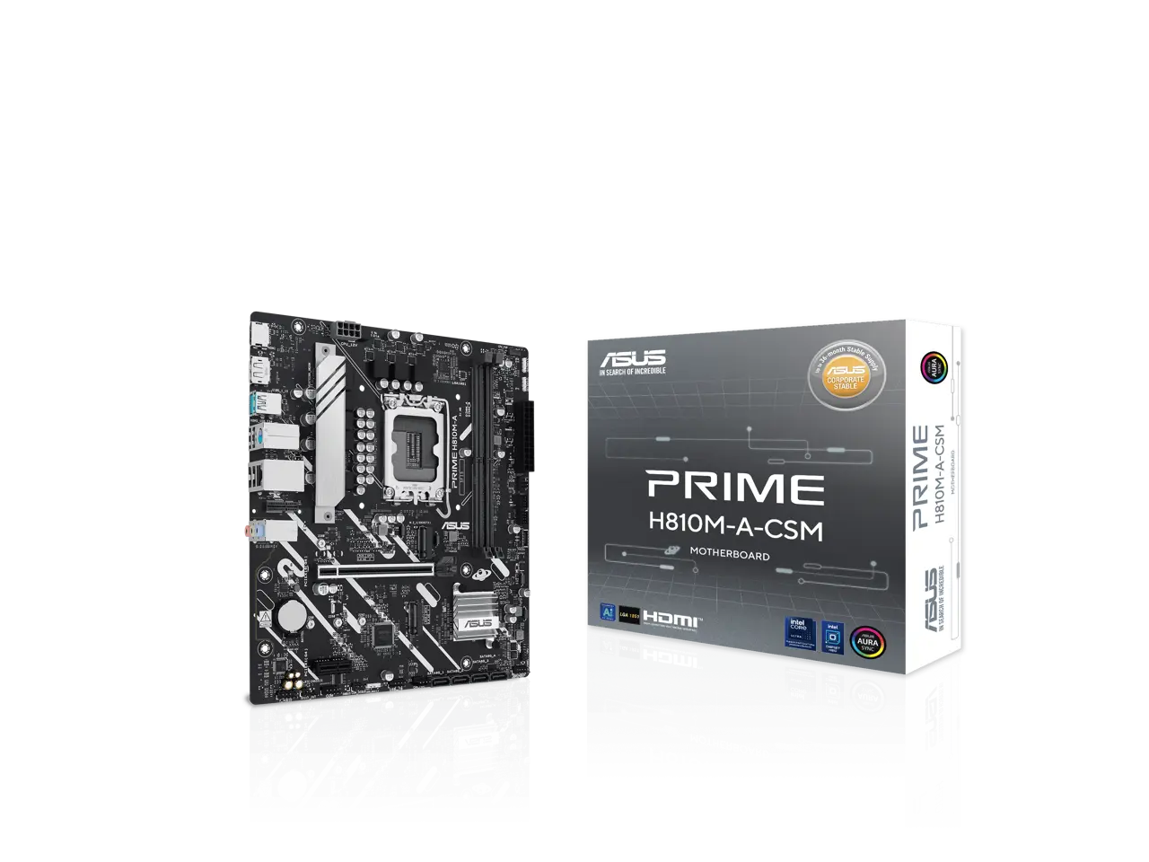 ASUS PRIME H810M-A-CSM Intel H810 LGA 1851 mATX motherboard, 6+1+1+1 Discrete MOS, DDR5, PCIe 4.0, 2xM.2 slots, Intel 1Gb Ethernet, DisplayPort, HDMI, USB 10Gbps, front USB 5Gbps Type-C