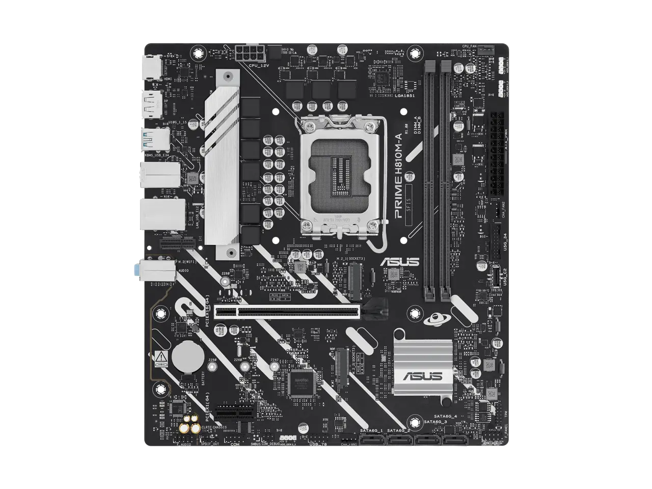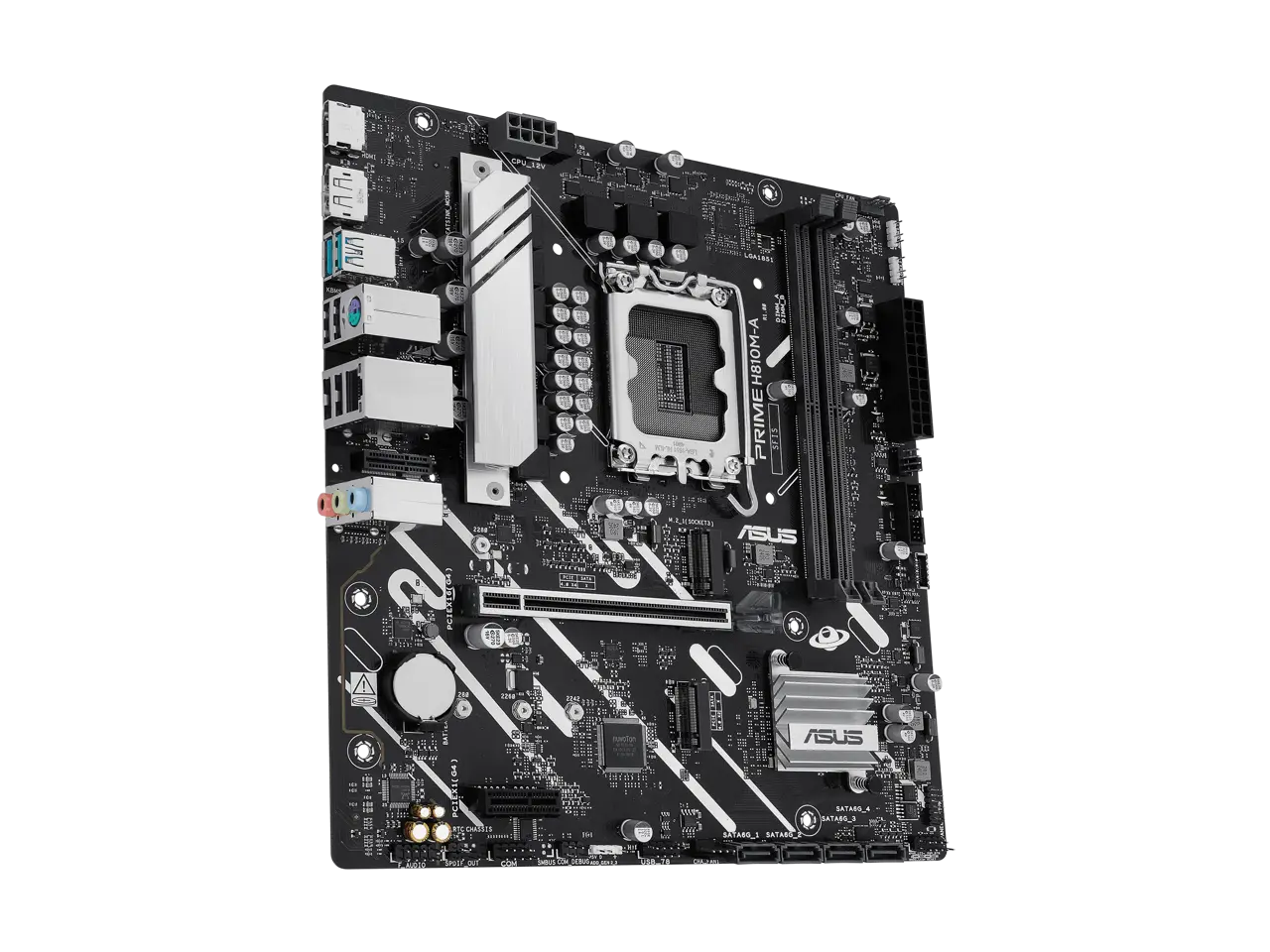 5. ASUS PRIME H810M-A-CSM Intel H810 LGA 1851 mATX motherboard, 6+1+1+1 Discrete MOS, DDR5, PCIe 4.0, 2xM.2 slots, Intel 1Gb Ethernet, DisplayPort, HDMI, USB 10Gbps, front USB 5Gbps Type-C