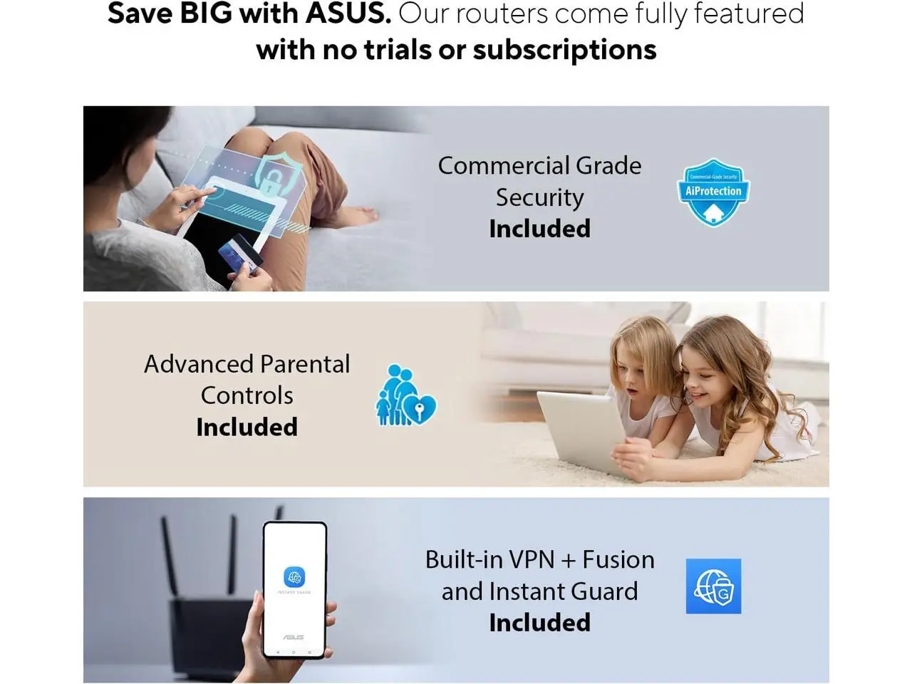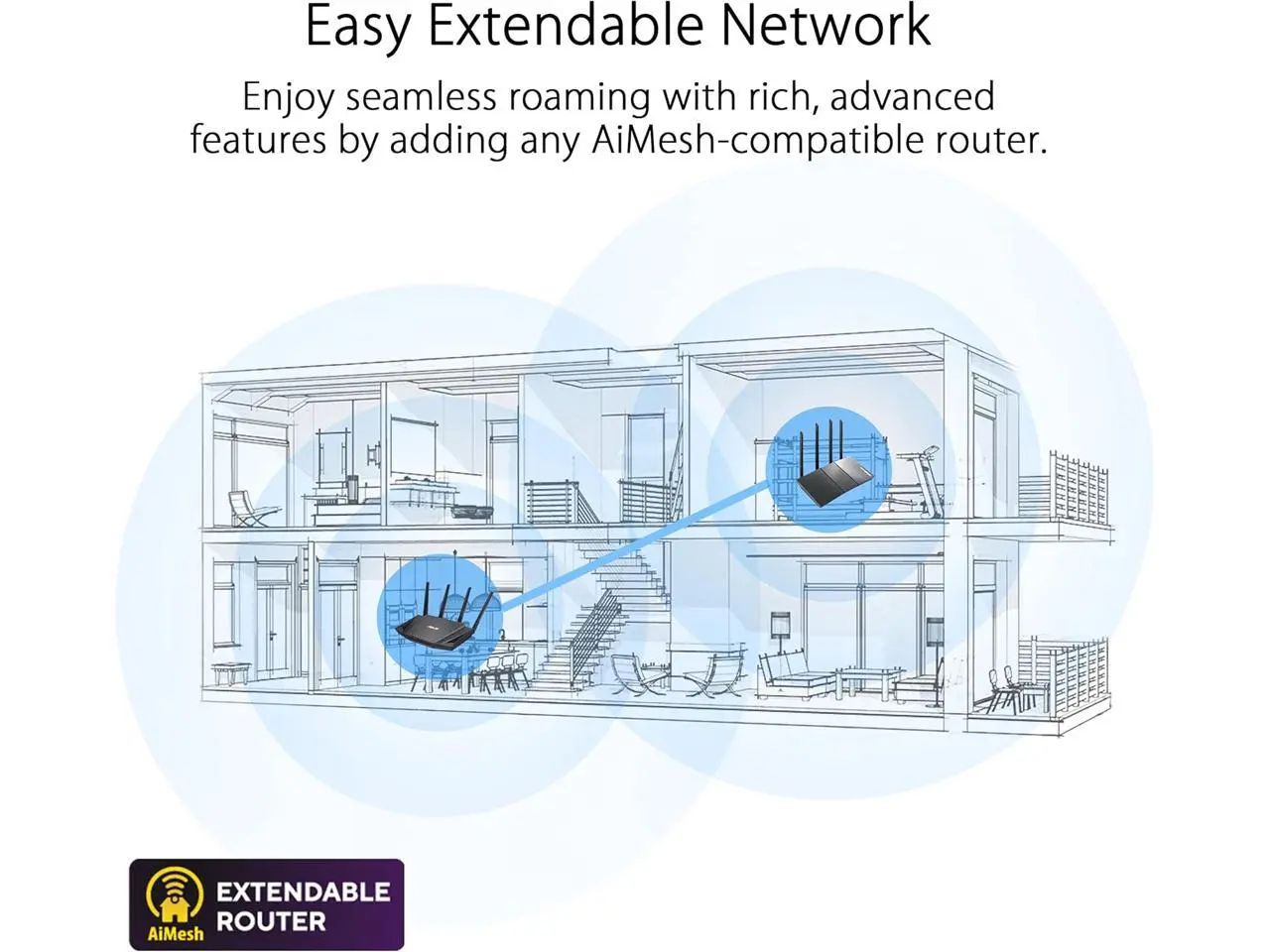 ASUS RangeBoost Plus enhances wireless network performance with next-gen Broadcom WiFi chipset and CPU, along with cutting-edge ASUS features that expand overall signal range and coverage by up to 38%*. (*Compared with a WiFi 6 client connected to a WiFi 5 router without RangeBoost Plus.)