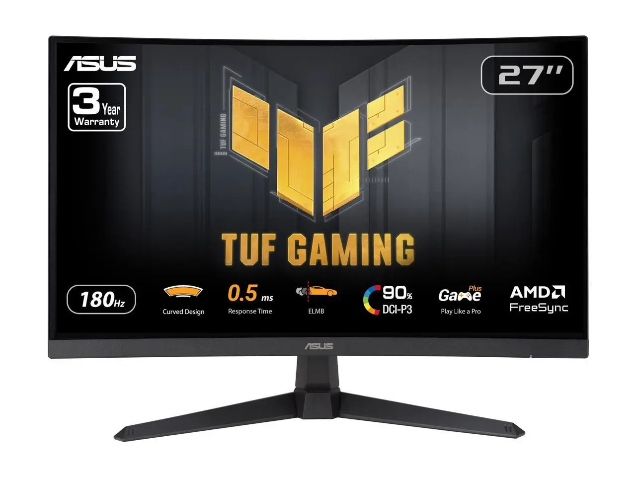 5. ASUS TUF Gaming 27" 1440P Curved HDR Gaming Monitor (VG27WQ3B) - QHD (2560 x 1440), 180Hz, 0.5ms, 1500R, Extreme Low Motion Blur, FreeSync, 90% DCI-P3, Shadow Boost, DisplayWidget