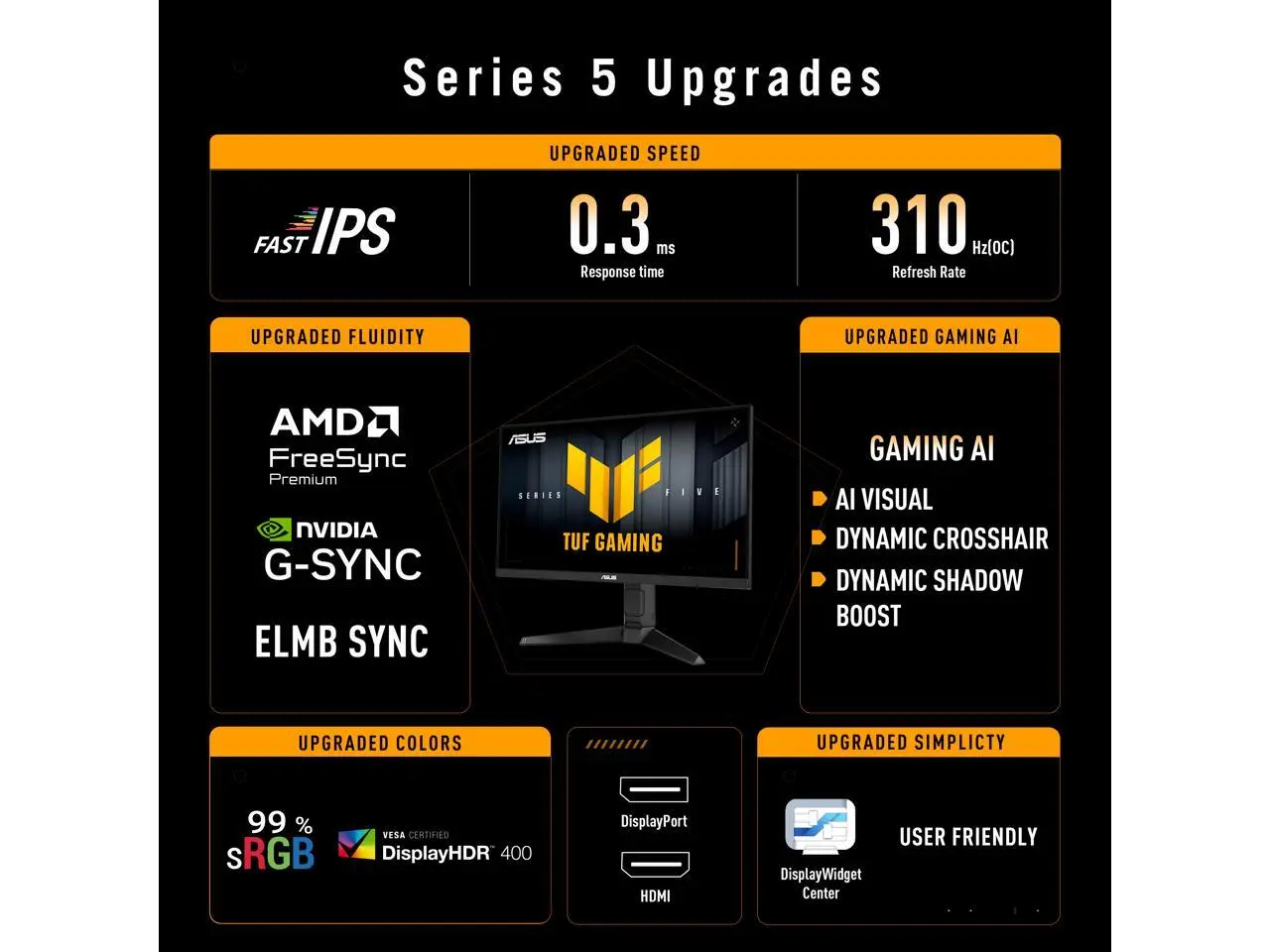 ASUS TUF Gaming Series 5 - VG259QMRL5A Gaming Monitor – 24.5-inch Full HD Fast-IPS panel, 310Hz(OC), 0.3ms, G-SYNC® compatible AMD FreeSync™ Premium, ELMB SYNC, VESA DisplayHDR™ 400, 99% sRGB