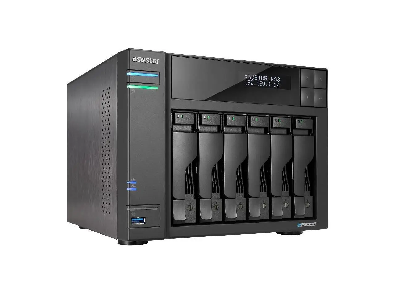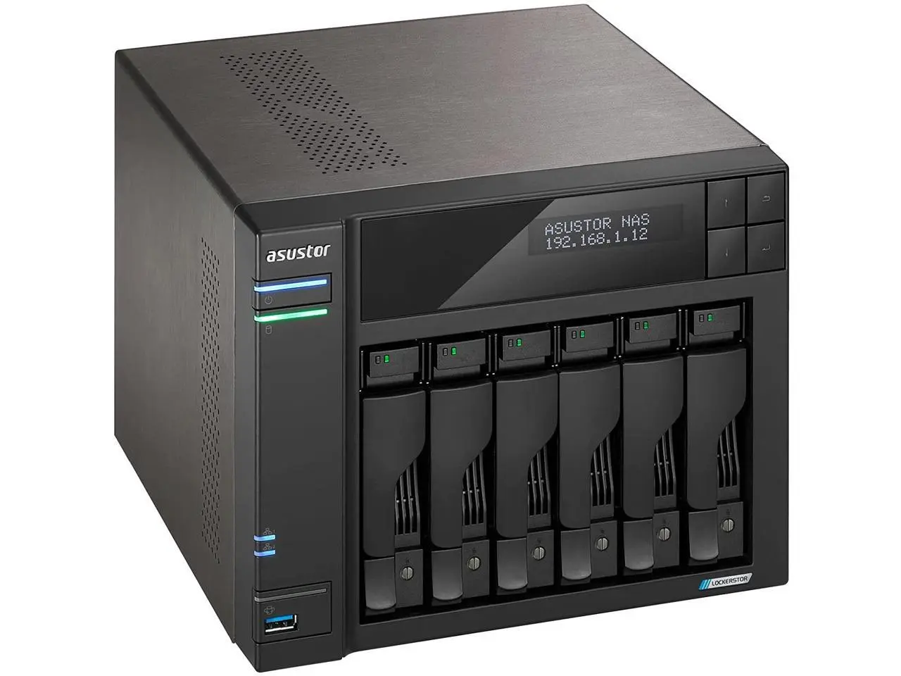 Asustor Lockerstor 6 Gen 2 AS6706T 6 Bay NAS, Quad-Core 2.0GHz, Dual 2.5GbE Ports, 8GB RAM DDR4, Four M.2 SSD Slots (Diskless)