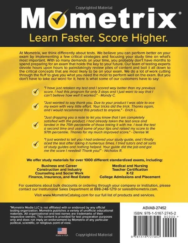 We've helped hundreds of thousands of people pass standardized tests and achieve their education and career goals. We've done this by setting high standards for Mometrix Test Preparation guides, and our ASVAB Study Guide - ASVAB Prep Book Secrets is no exception. It's an excellent investment in your future. Get the ASVAB review you need to be successful on your exam.