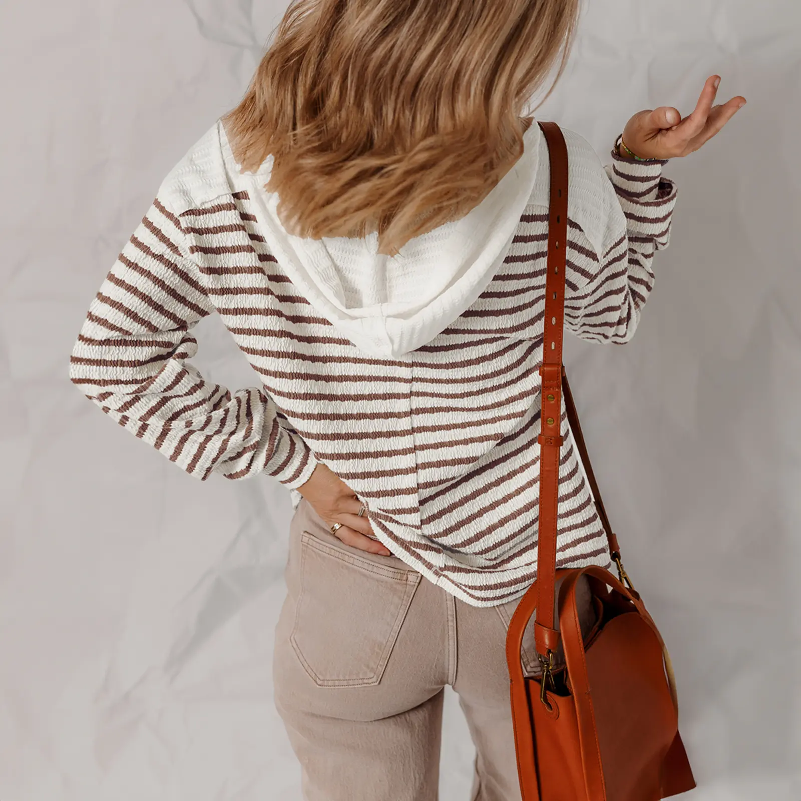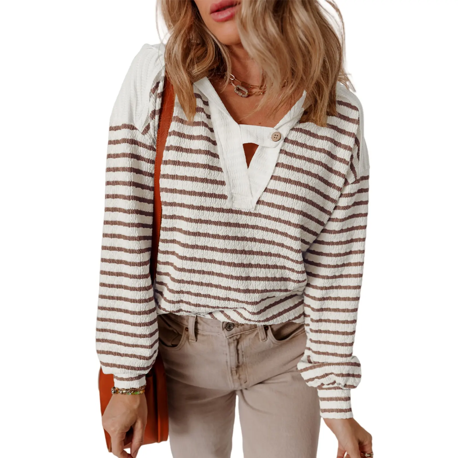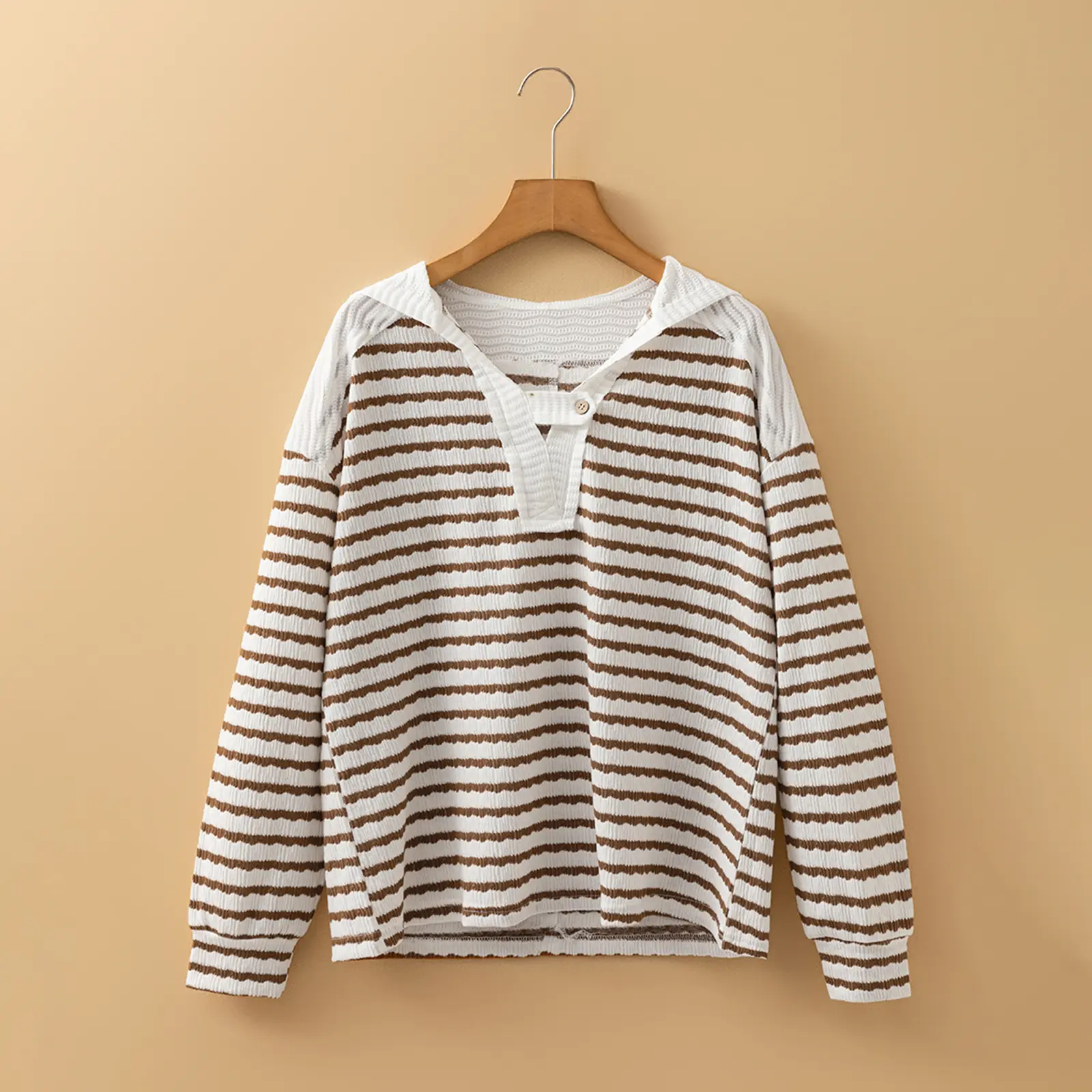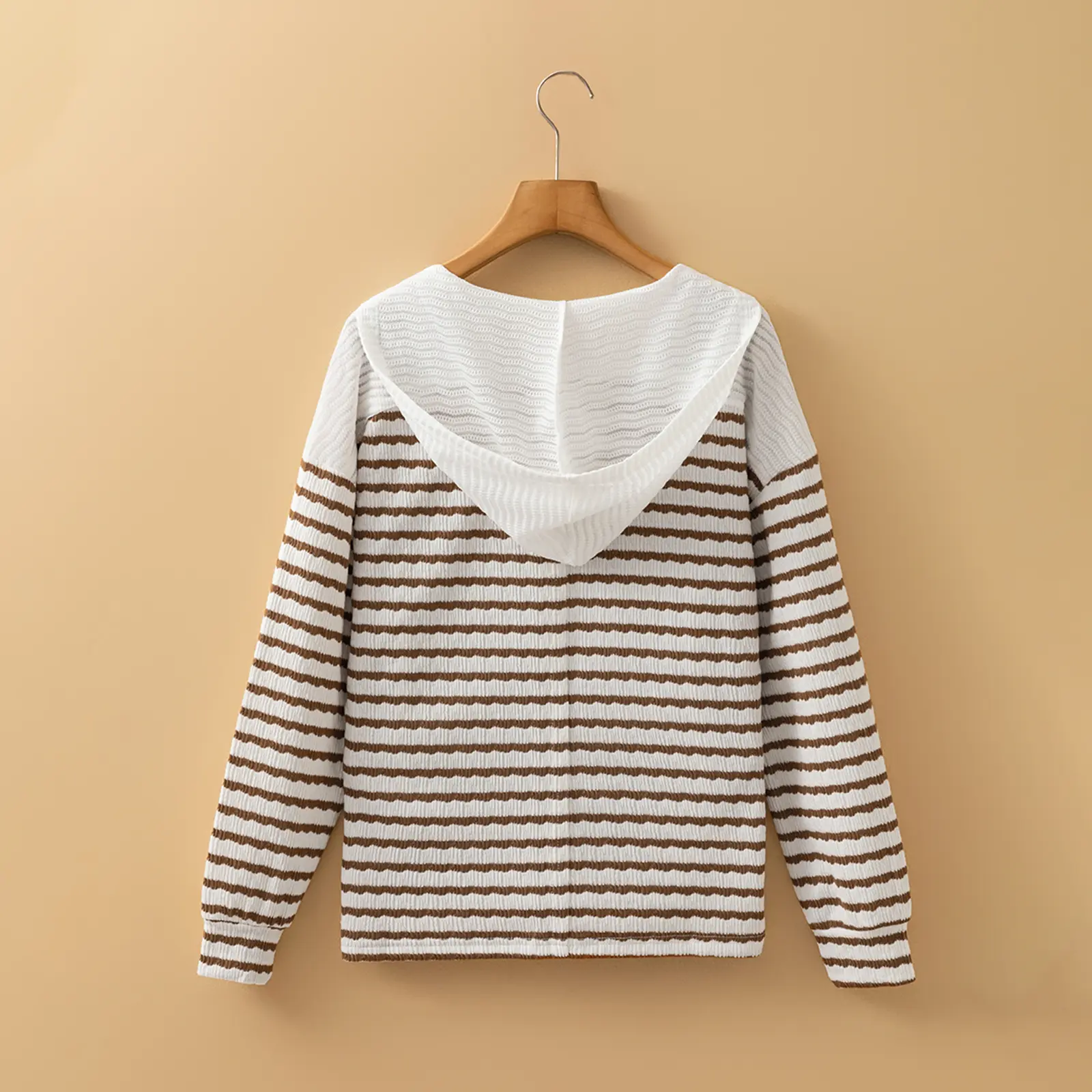 ✨ Elevate your casual wardrobe with the Asvivid Women's Striped Hooded V Neck Casual Long Sleeve Top. This top features a stylish striped pattern and a textured fabric for added depth. The pullover v neck with buttoned strap detail.Perfect for everyday wear, it offers both comfort and style. The V-neck design complements various face shapes, making it versatile for different occasions.