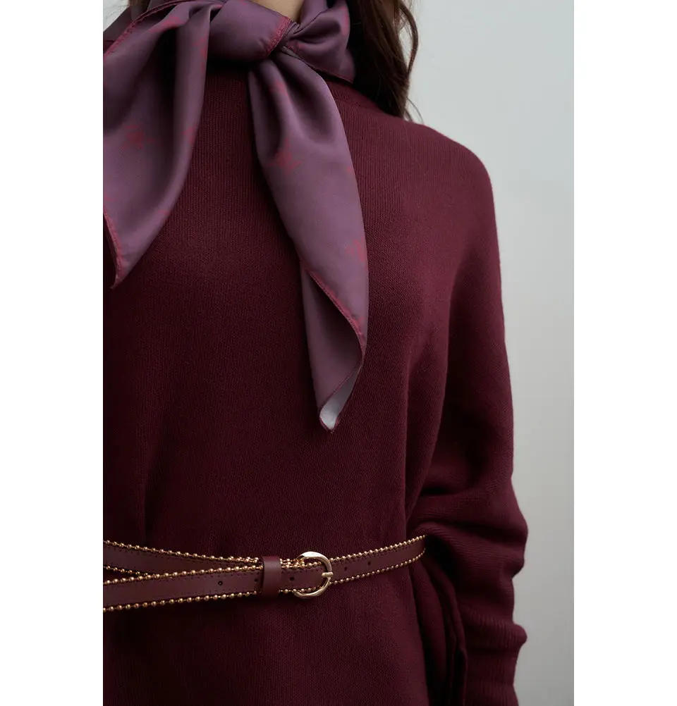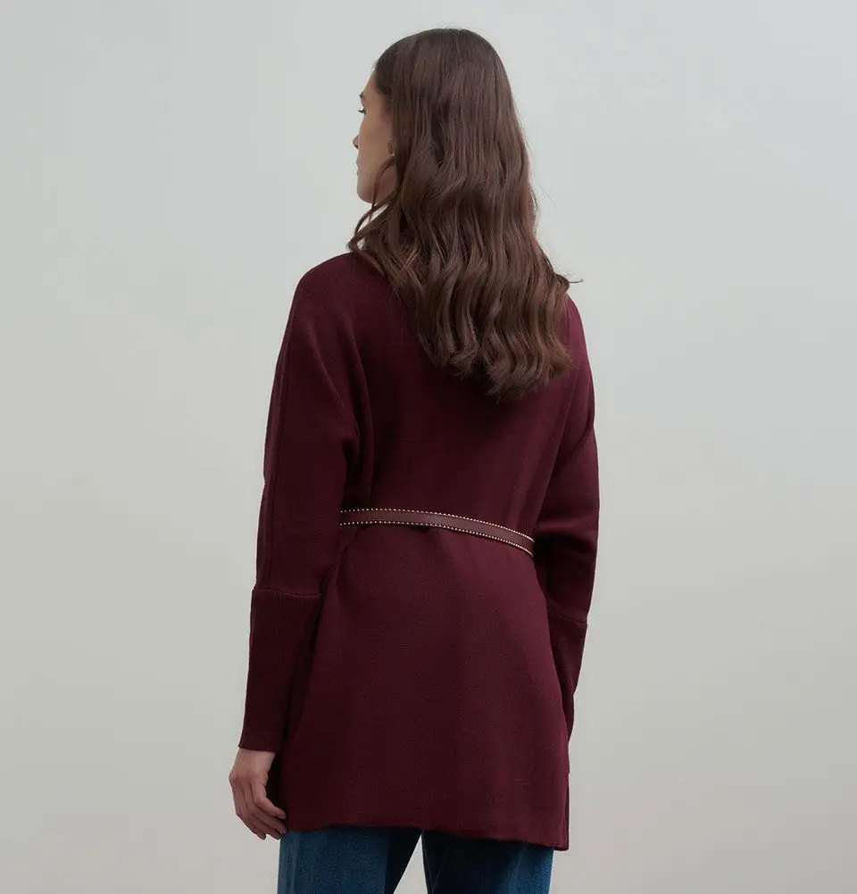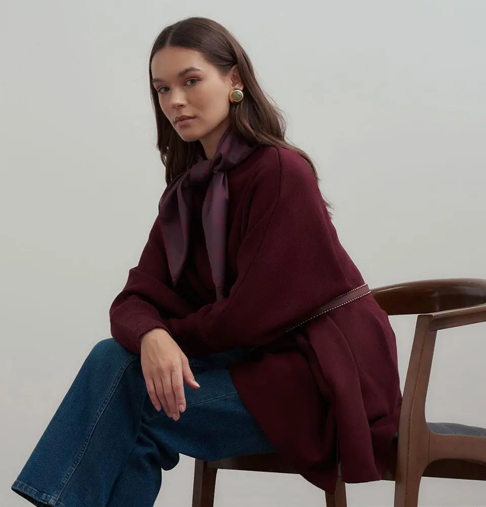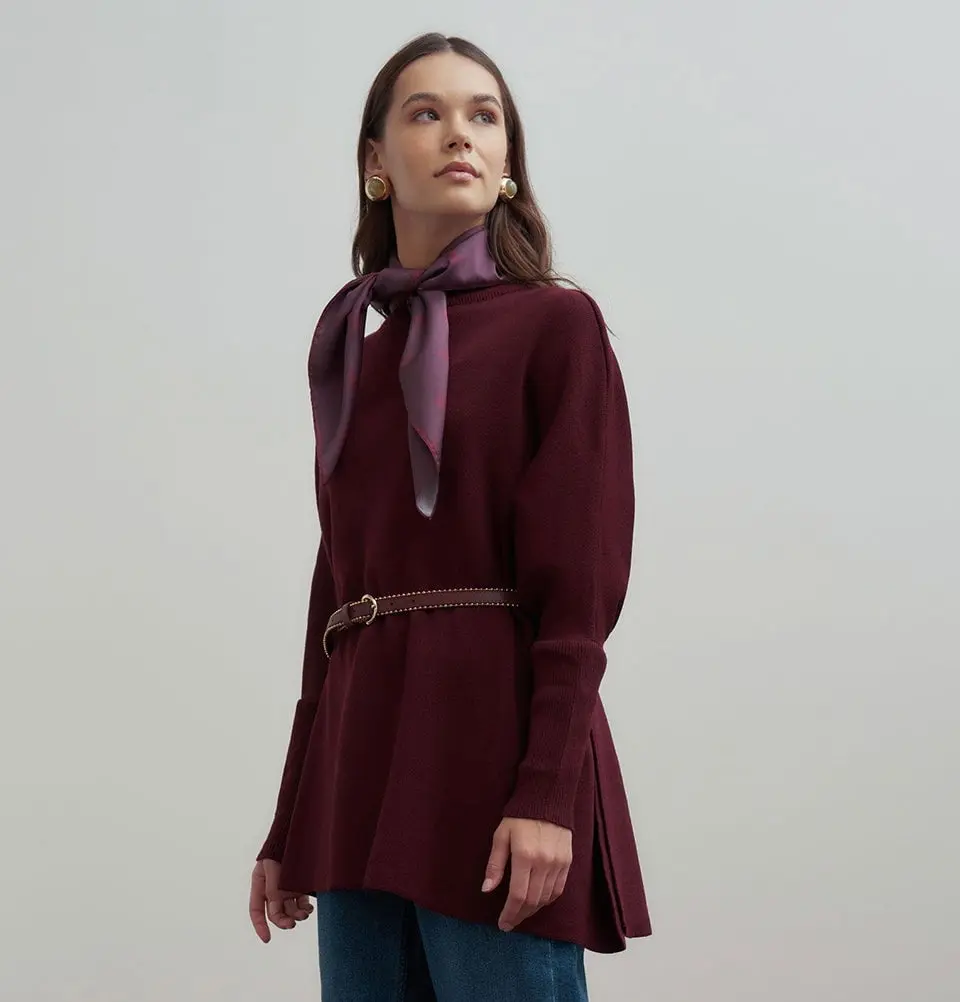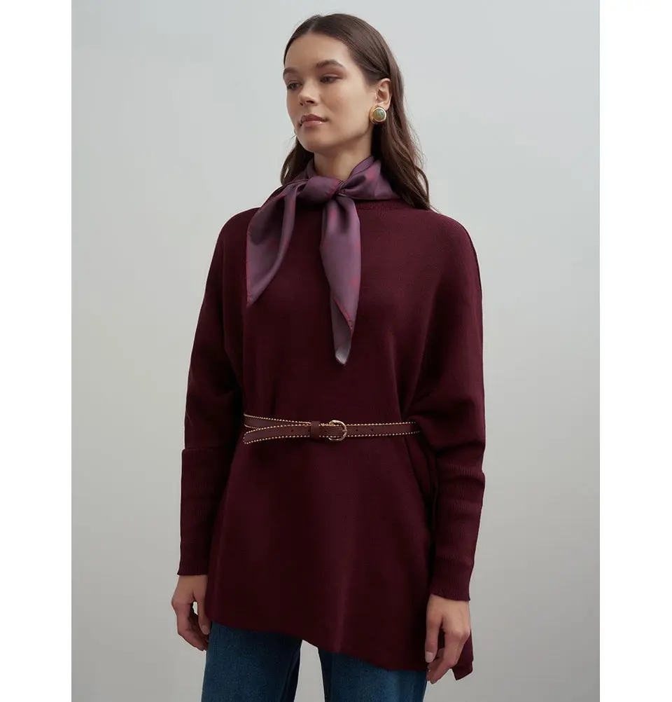 Modest Muslim Women's Asymmetric Cut Knit Sweater - 55048 Burgundy Red