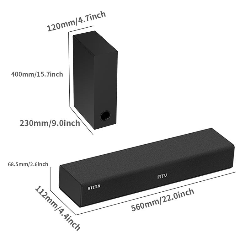 The ATEYA Smart Android TV Sound Bar is designed for easy setup. Simply connect via wireless Bluetooth and enjoy your favorite music and movies. The included digital TV antenna ensures clear signal reception. Perfect for indoor use, this sound bar is a versatile addition to any smart TV setup.