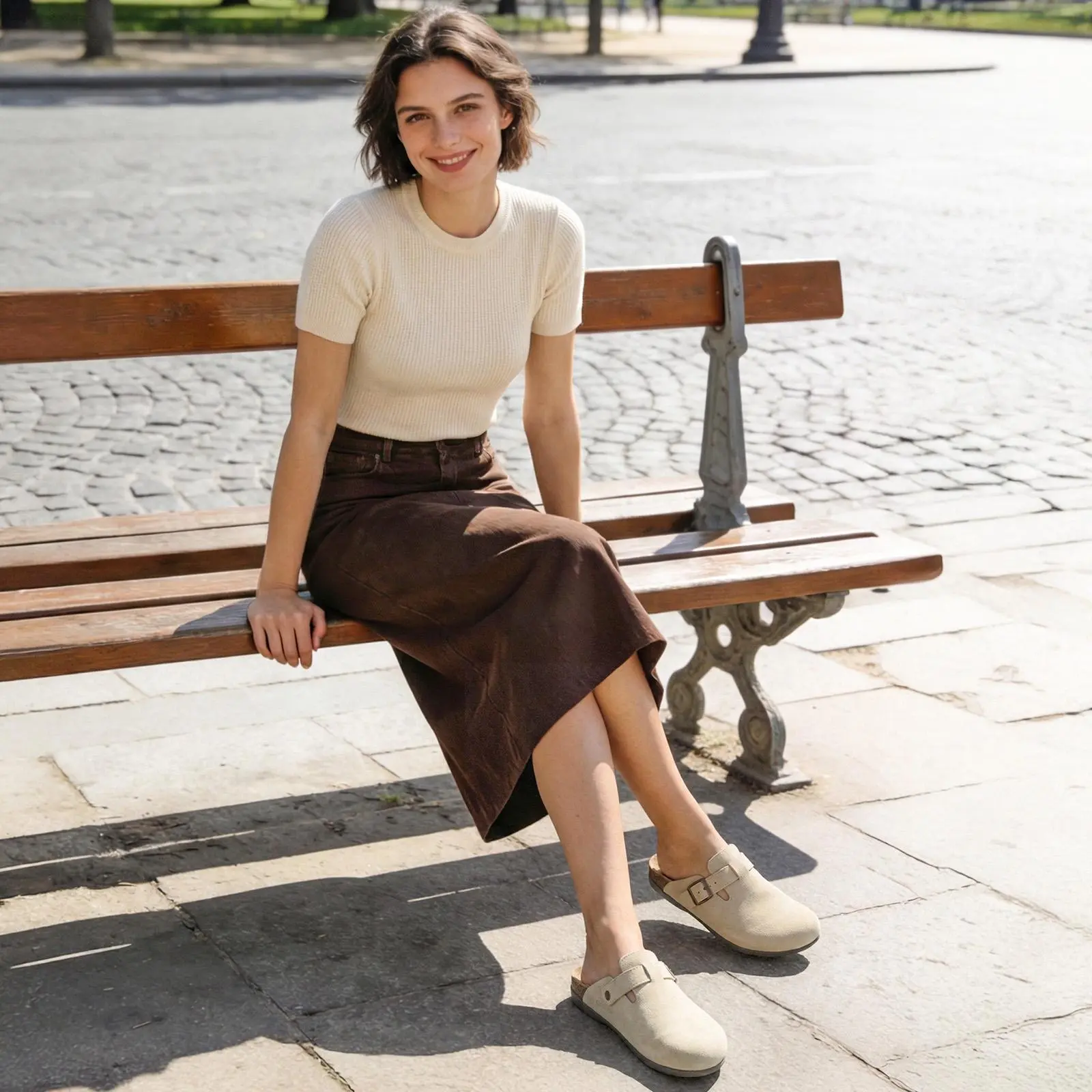 ·Multi-style Genuine Leather: Genuine suede leather delivers breathable ease, complementing jeans, leggings, skirts, or dresses, and making the womens mules an easy match for work outfits or casual wear