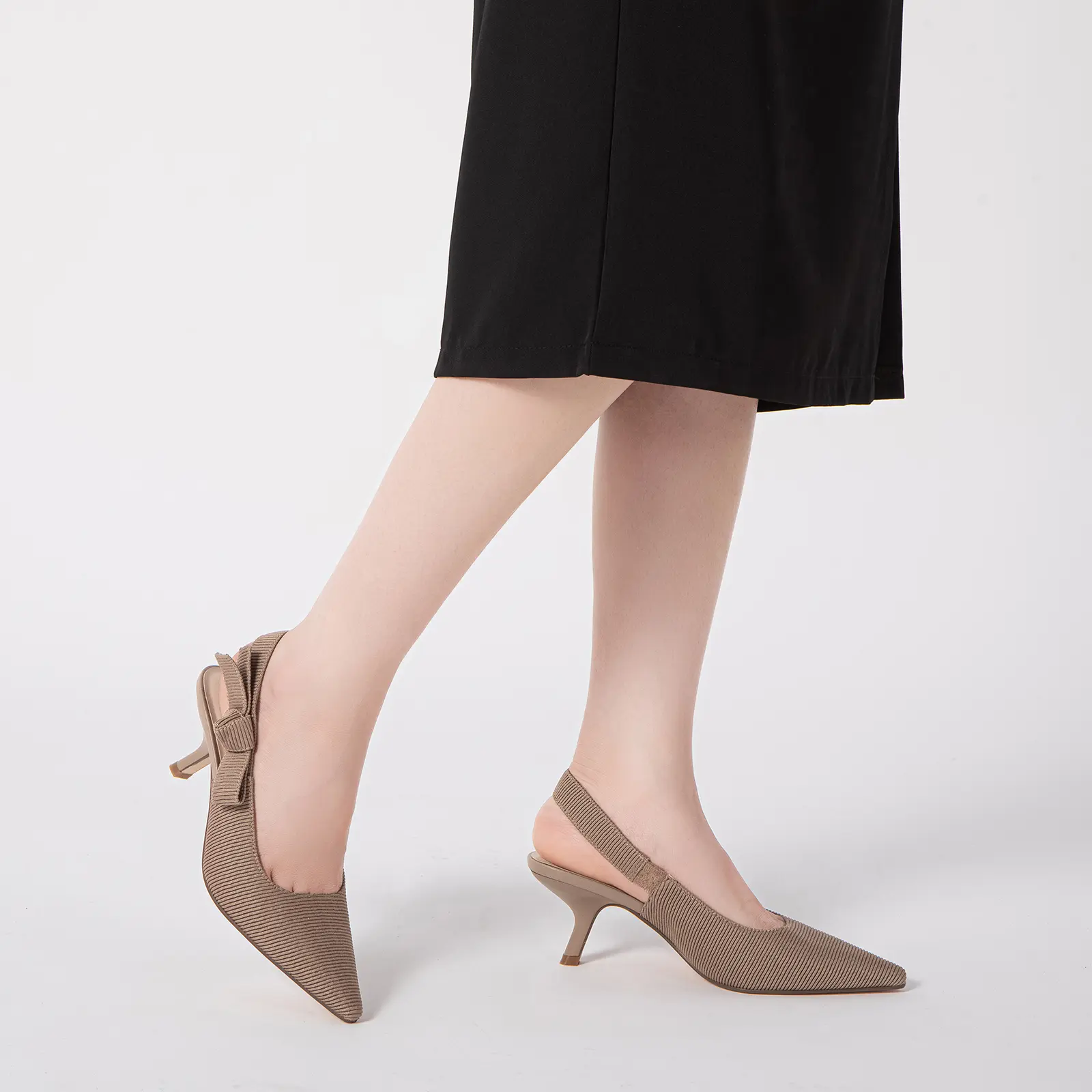 ·Textured Fabric Upper: Crafted from a soft, textured fabric, the upper is lightweight and stylishly ribbed for a unique finish. The slingback heels offer comfort with a touch of modern minimalism that fits right into your dressy casual rotation
