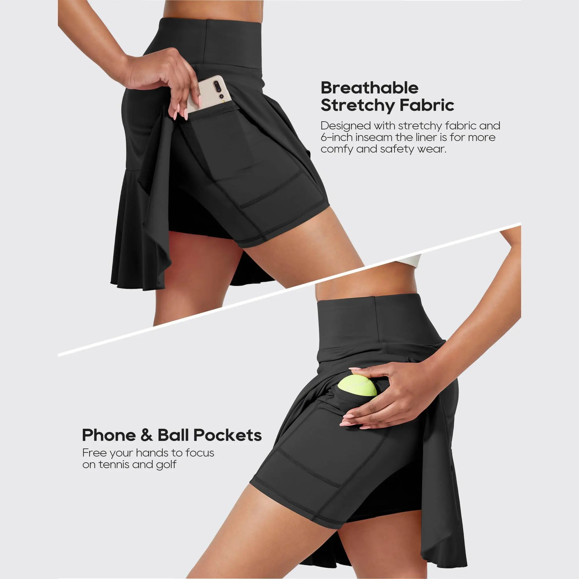 ·Built-in Short Liner- Design skirt outer and shorts inner, providing secure coverage