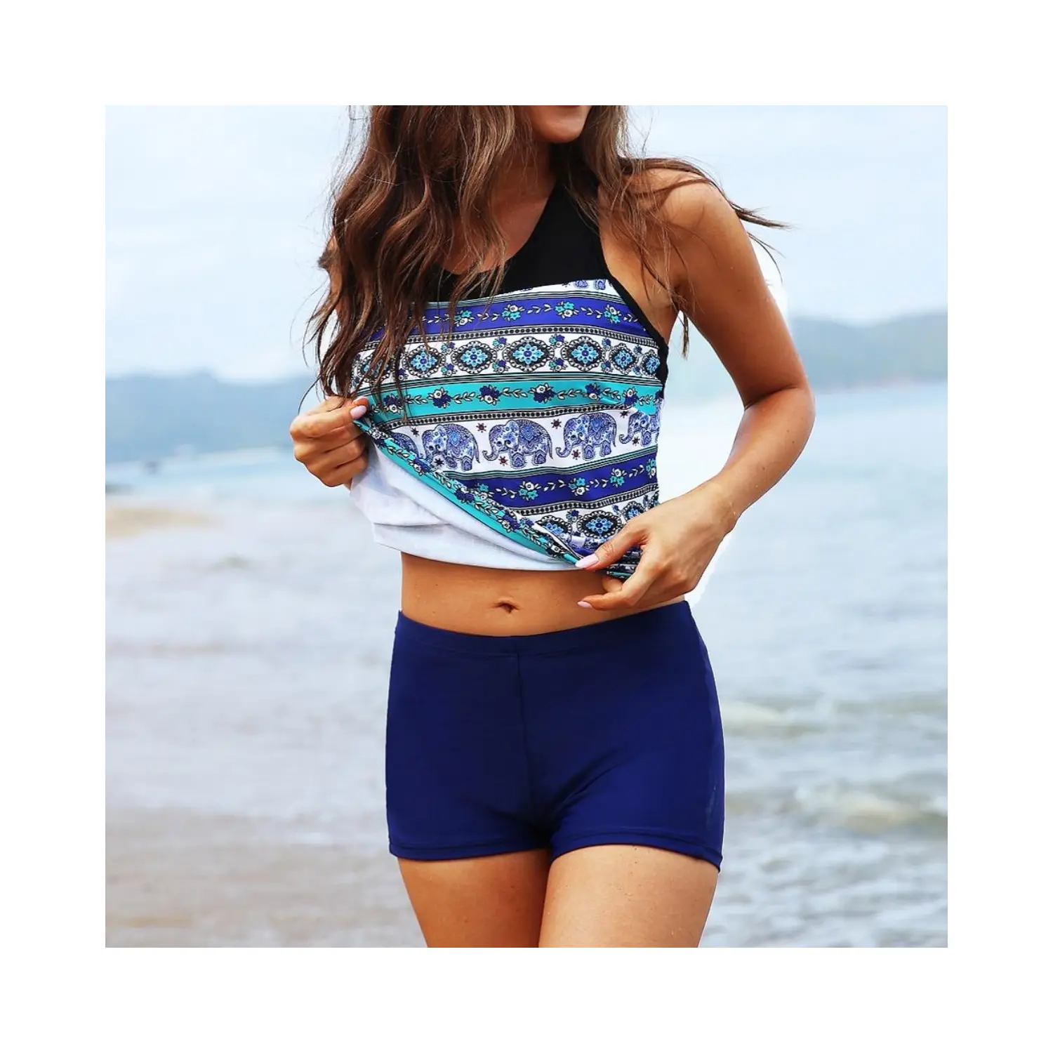 ·The racerback tank top paired with mid-waist solid boy shorts allows you to confidently showcase your style during outdoor sports. This swimsuit is perfect for volleyball and family gatherings, offering a conservative yet flattering look.