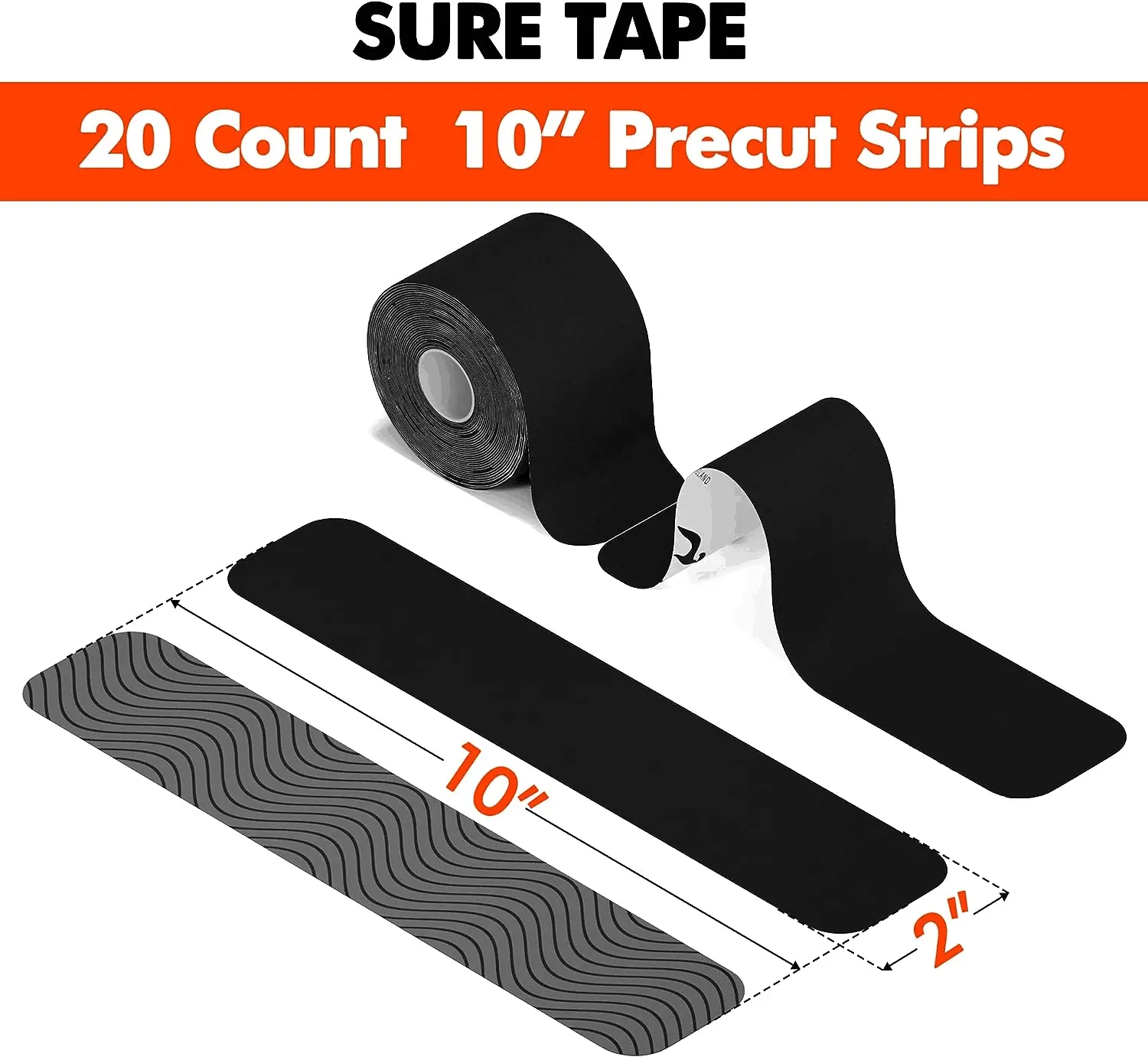 Each package contains 20 pre-cut 10-inch strips, perfect for easy application. The strips are 2 inches wide, ensuring a secure fit. Curved corners prevent snagging on clothing. This user-friendly design saves time and effort, making it ideal for any activity. Simply tear and apply for instant support.