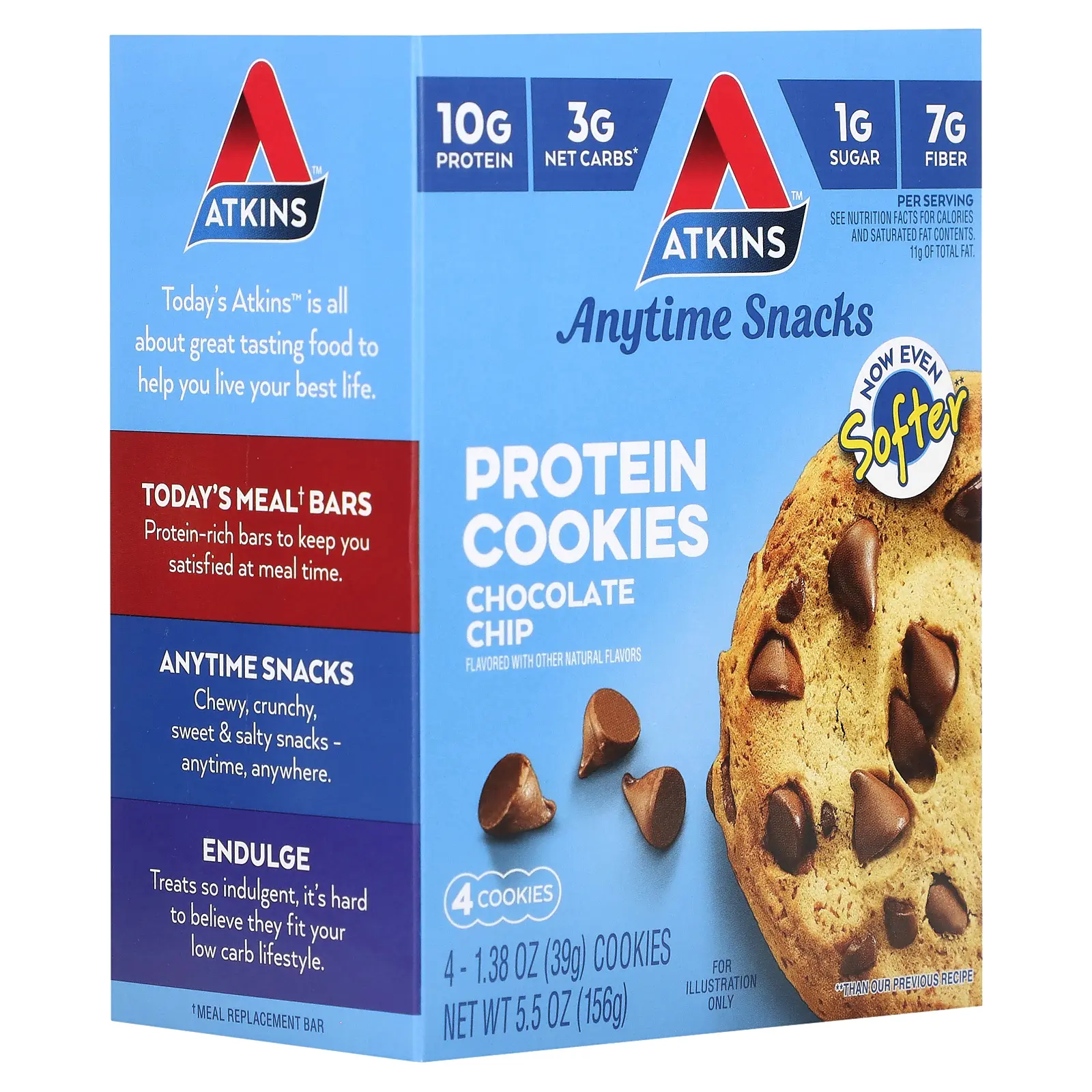 5. Atkins Anytime Snacks, Protein Cookies, Chocolate Chip, 4 Cookies, 1.38 oz (39 g) Each