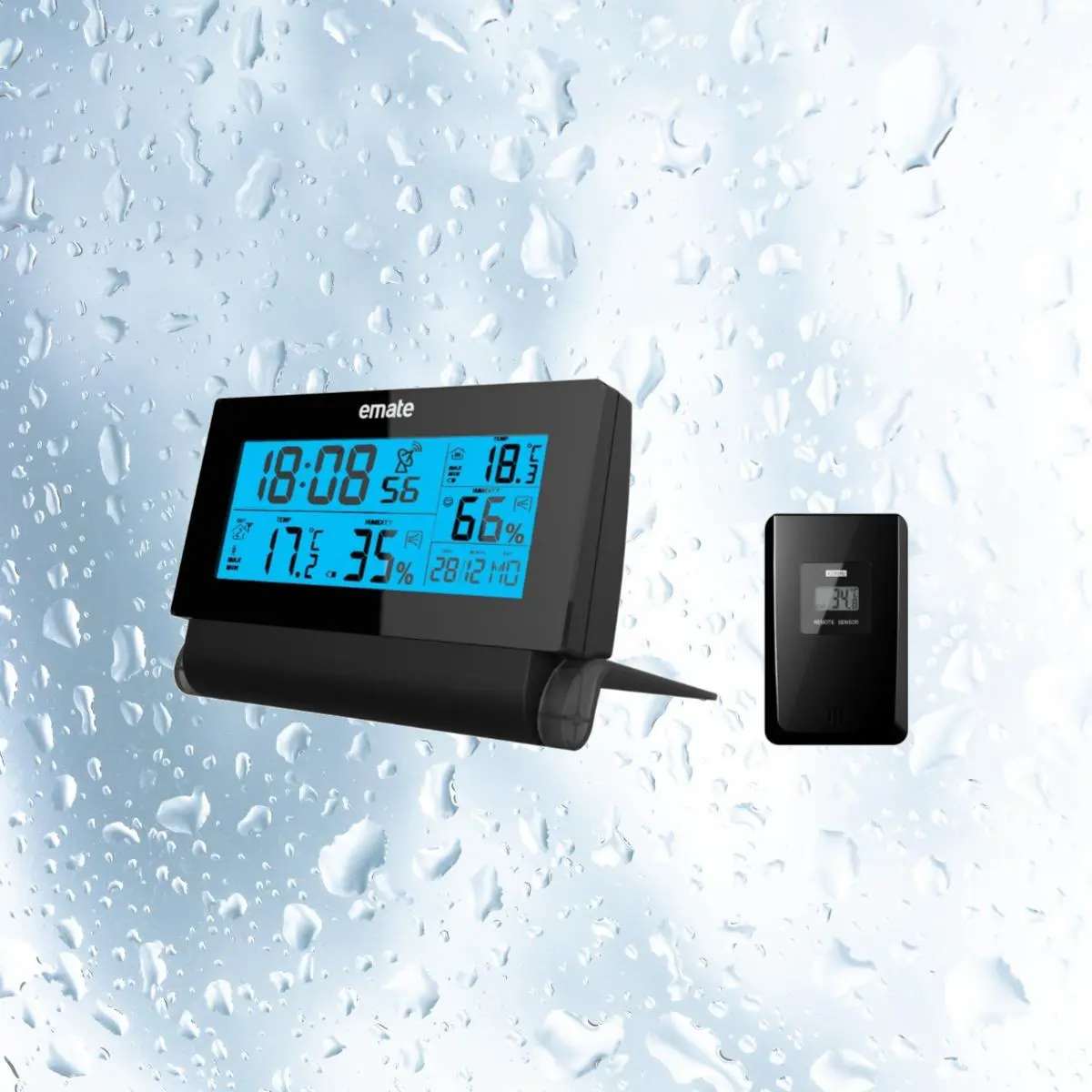 Sonnet Industries T-4641 Atomic LCD Clock with Back Blue Light & Indoor & Outdoor Remote Sensor for Temperature & Humidity