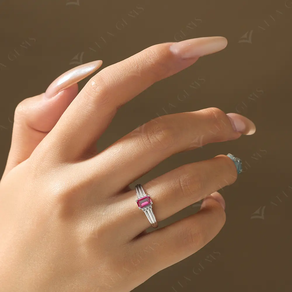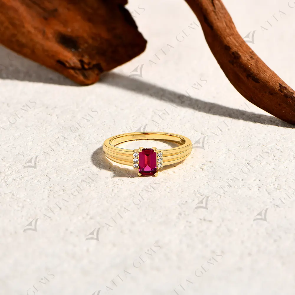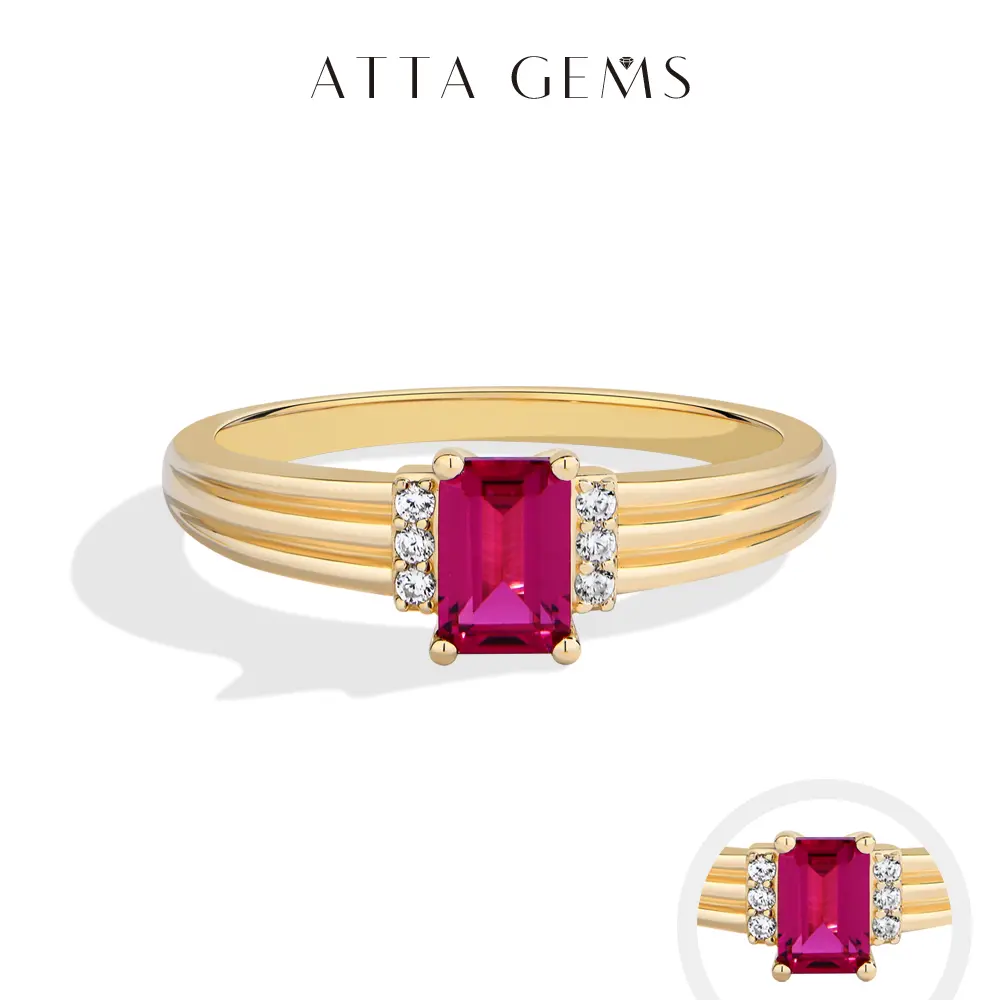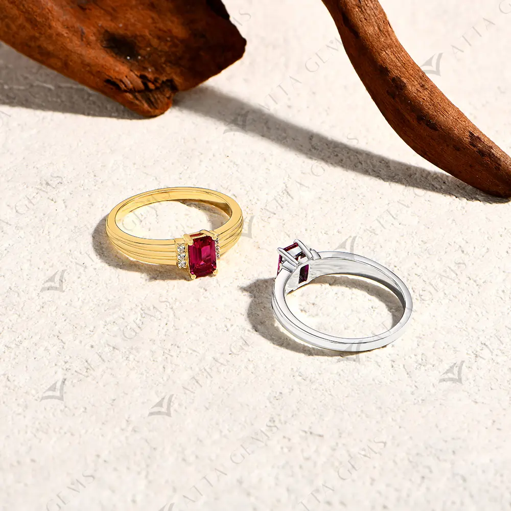 ATTAGEMS Luxury Lab-Created Ruby Moissanite Ring