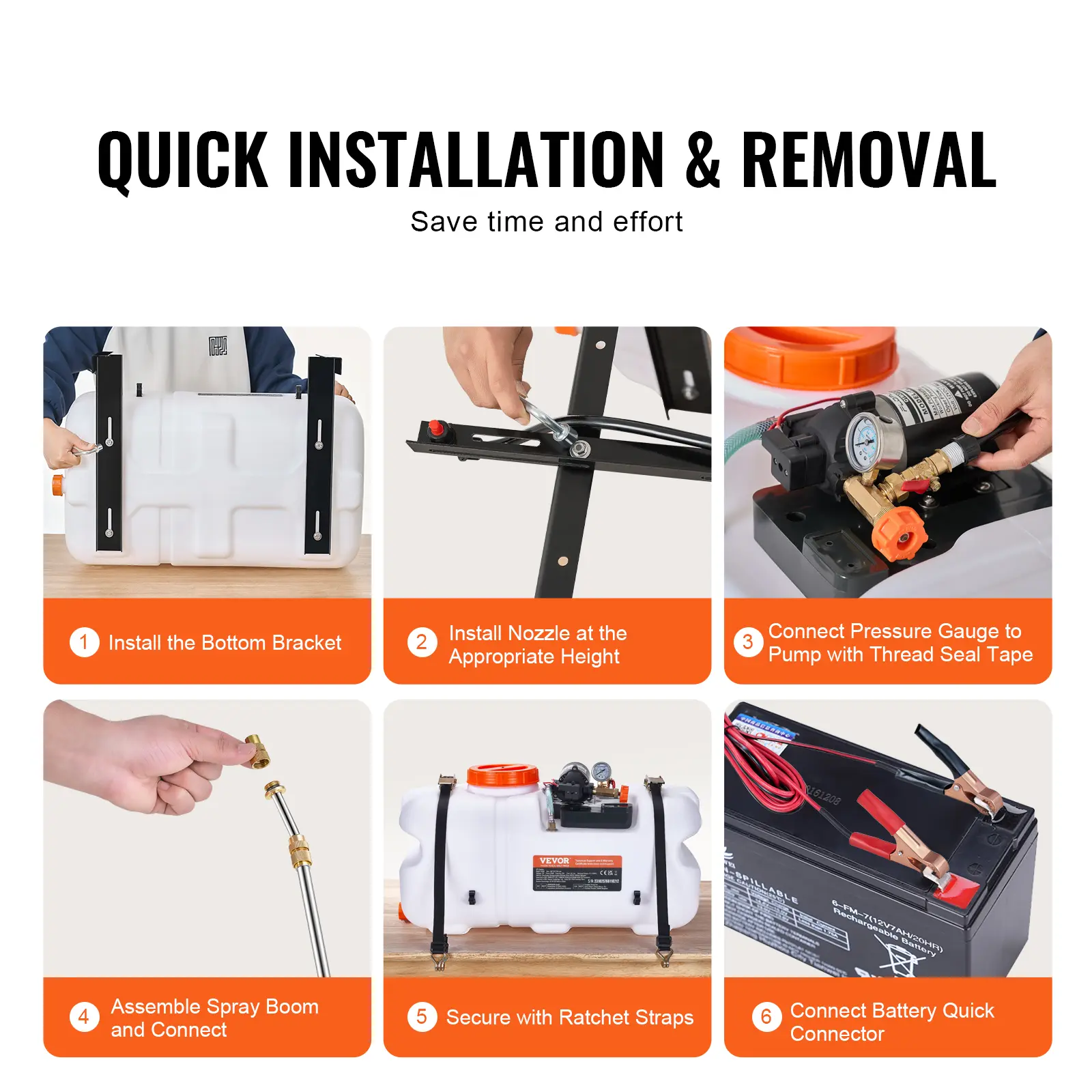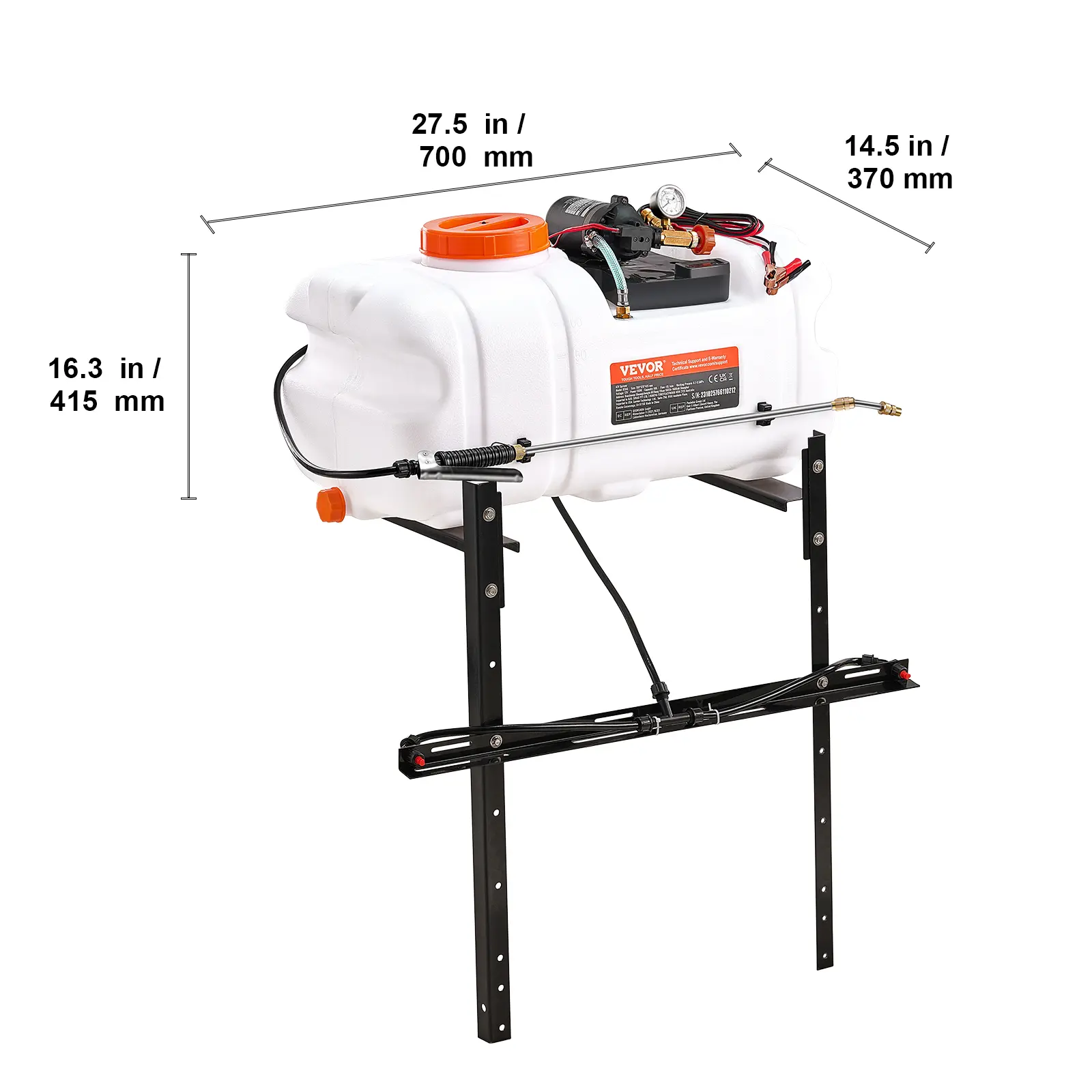 • Stability and Durability: Our ATV spot sprayer is equipped with ratchet straps for enhanced stability and grooves on both sides for easy transport. The bottom drainage design prevents incomplete draining, and the tank features volume calibration lines for quick liquid level monitoring. A measuring cup is included for easy liquid mixing.