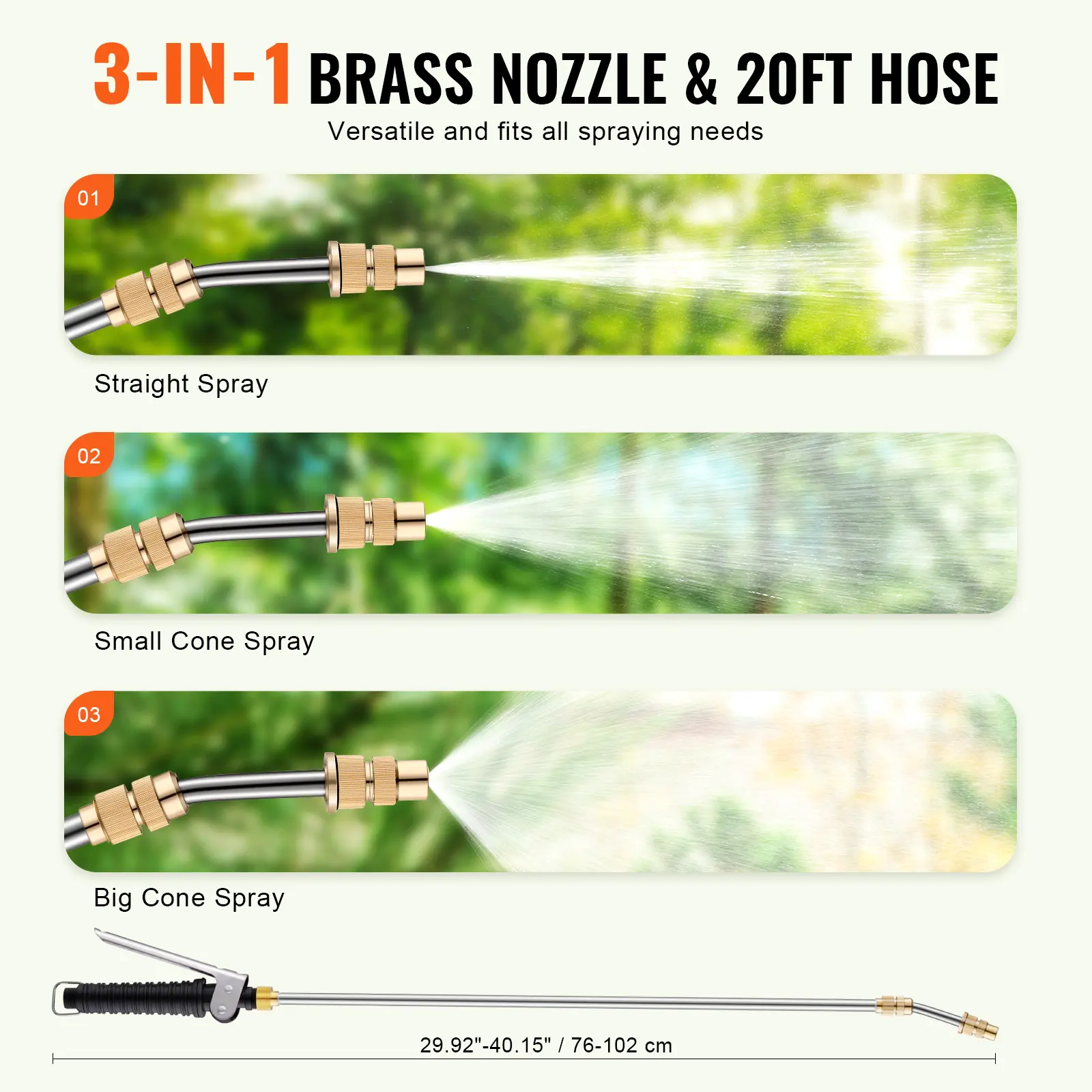 • Handheld Spray Boom & Brass Nozzle: Our telescopic boom offers adjustable spraying distances, while the corrosion-proof brass nozzle ensures durability. It provides three spraying modes to cater to your plant needs. The reinforced handle offers a comfortable grip, and the 5.6" large tank opening facilitates easy liquid pouring.