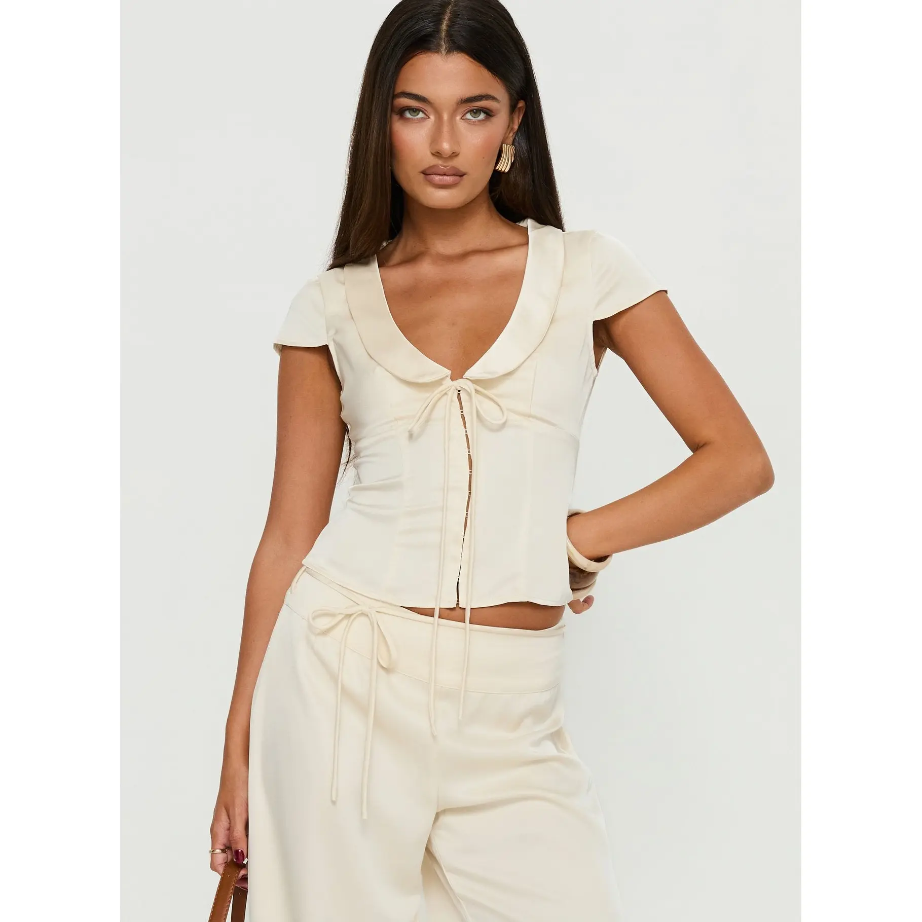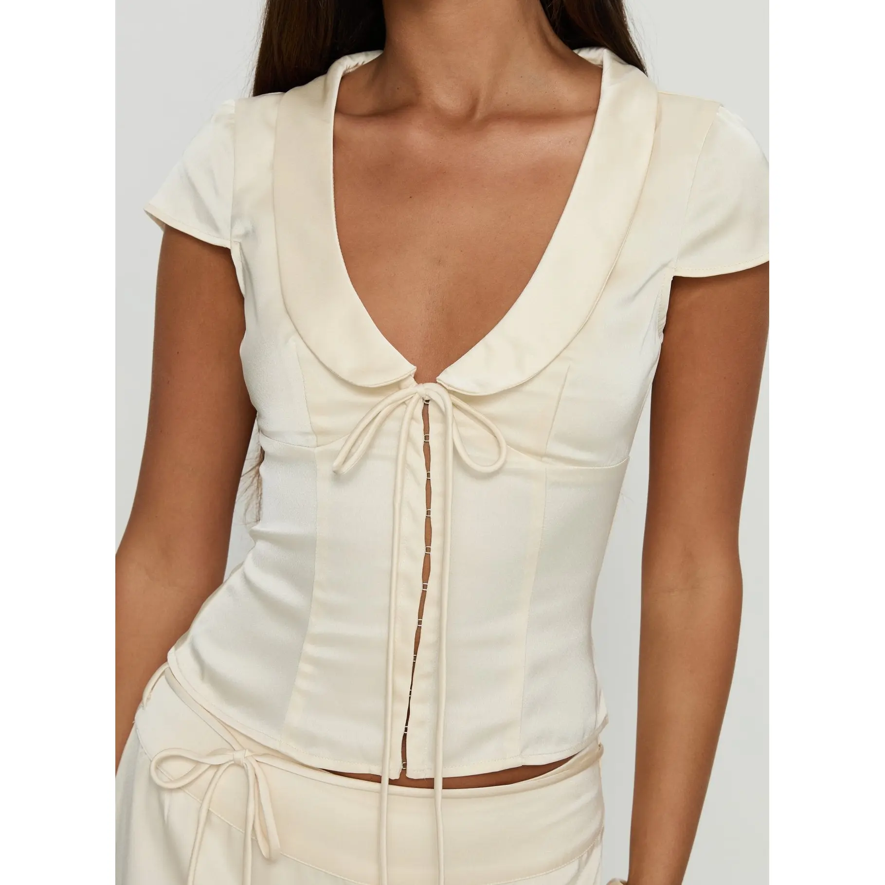 5. Aubrette Satin Collar Top Cream