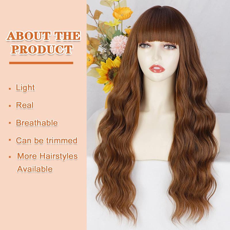 【Highly Recommend】Long Auburn Wig is a charming and fashionable hairstyle. Higlight colors make you look more lively and cute.Choosing this long wavy wig can quickly increase your hair volume and length, give you more vitality and rich layers in a few minutes, make you more charming, confident and stunning, and it will provide you with more surprises.