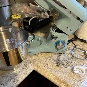 ·Complete Accessories Included: Metal dough hook, whisk & beater—all dishwasher-safe. Splash-proof cover keeps your kitchen clean and mess-free.