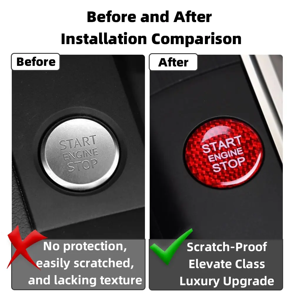 5. For Audi Real Carbon Fiber Ignition Engine Start Stop Button Trim Protect Stickers For A5 A7 A4L A6L Q3 Q5L Accessories Black and Red Are Available Anti-Scratch Protection Enhances Texture for a More Premium Look Sticker For Cars