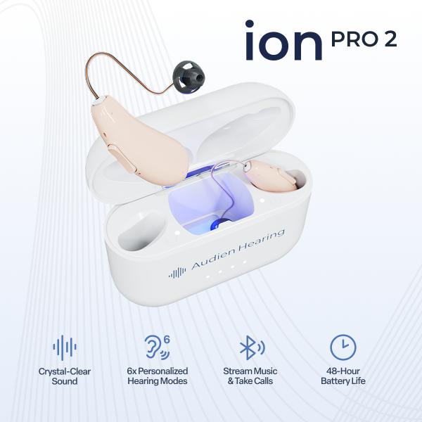 Crystal-clear calls and streaming: Ion Pro 2 features enhanced Bluetooth with improved streaming audio. Make phone calls and stream music directly to your hearing aids with sound quality that's better and more immersive than ever before.