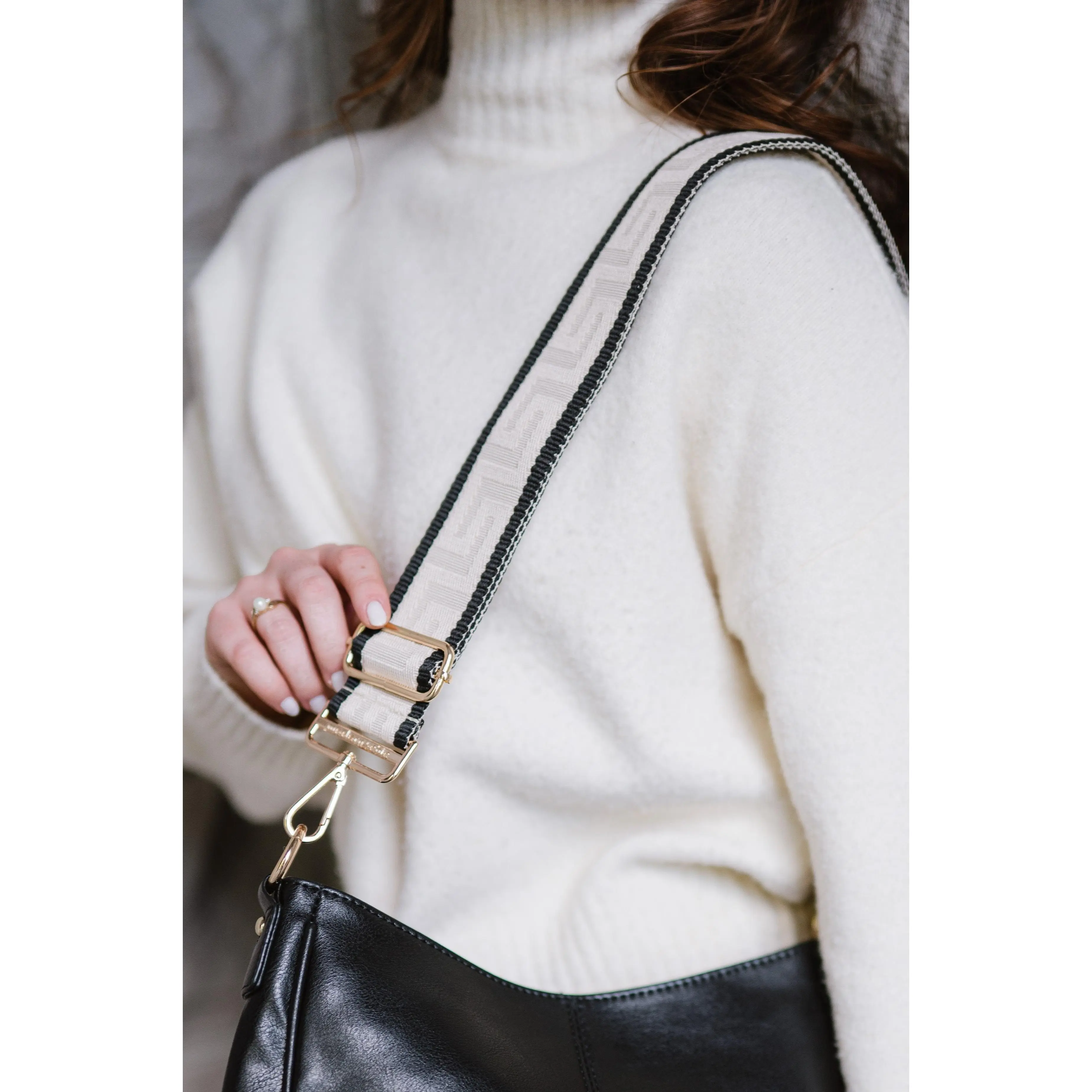 Such a good quality, beautiful strap. I love how well the blush and cream go together and it looks gorgeous on cream colored bags!