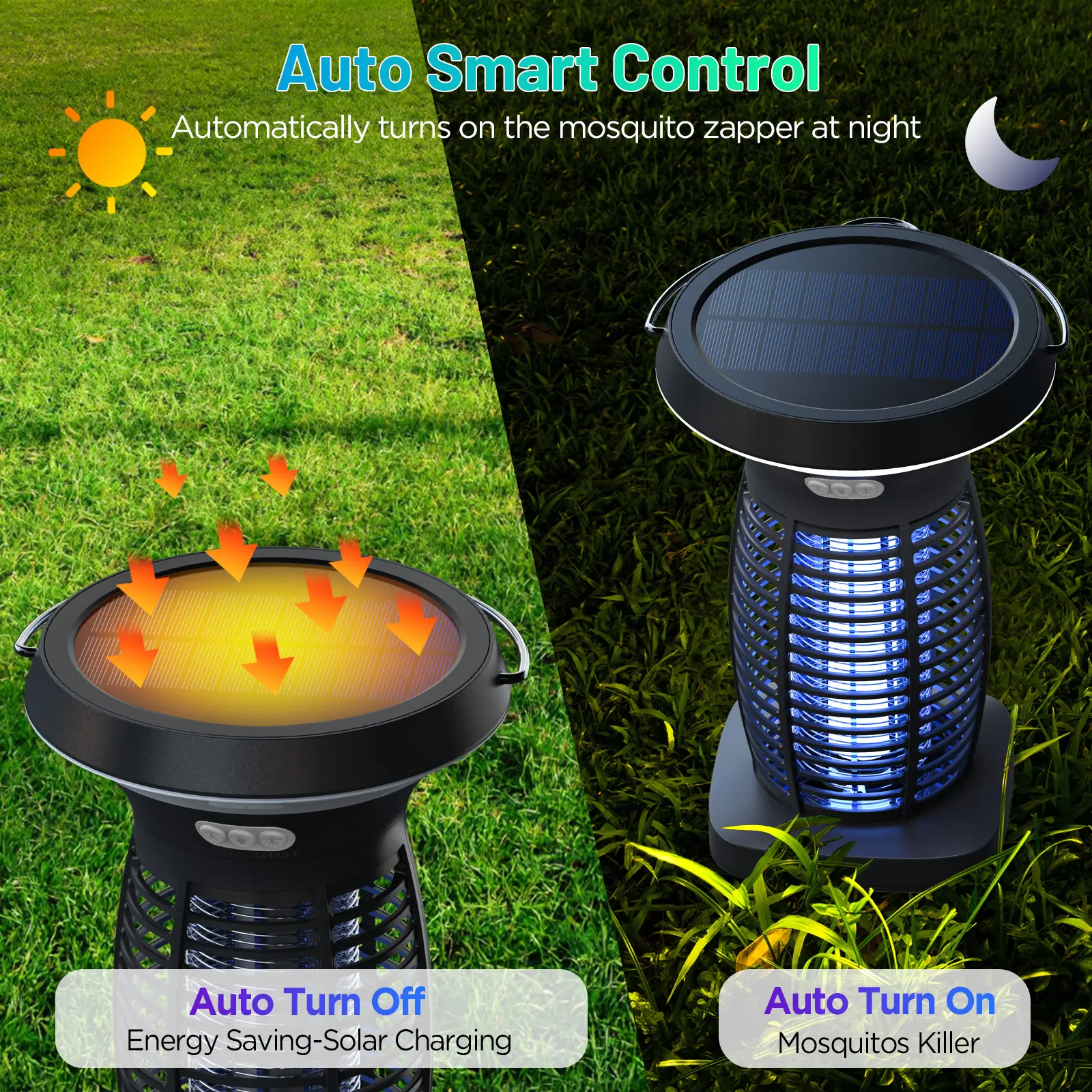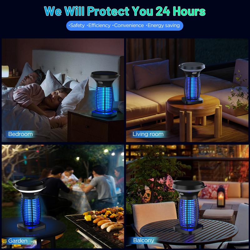·Solar-Powered Efficiency: Our bug zapper is powered by the sun, making it both eco-friendly and cost-effective. The solar-powered battery takes around 10 hours to fully charge. Whether you're enjoying the great outdoors or staying cozy indoors, this lamp is a breeze to use. With this feature, you can say goodbye to any power outage concerns. It's important to note that the solar bug zapper will automatically charge under sunlight and activate in the dark, providing seamless functionality.