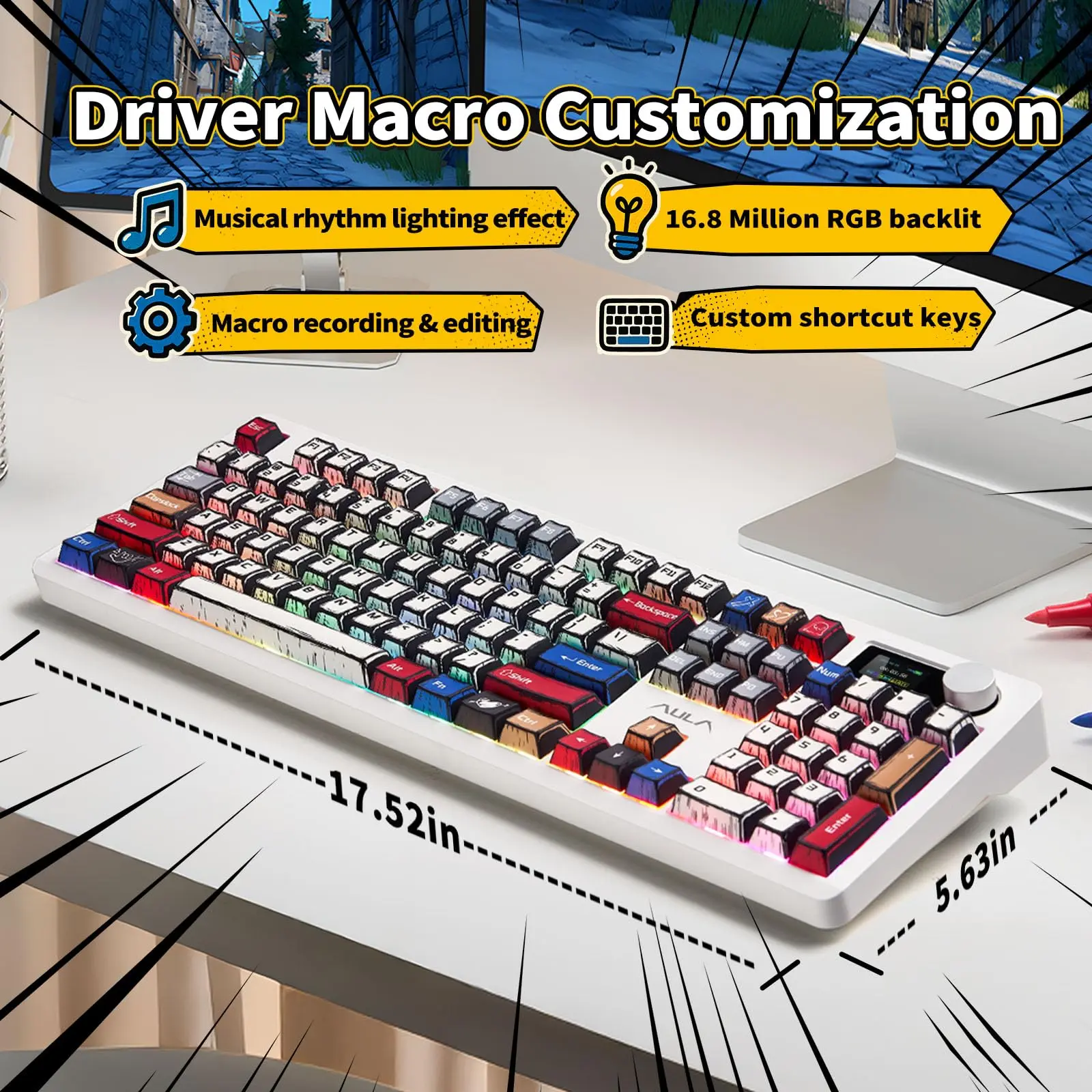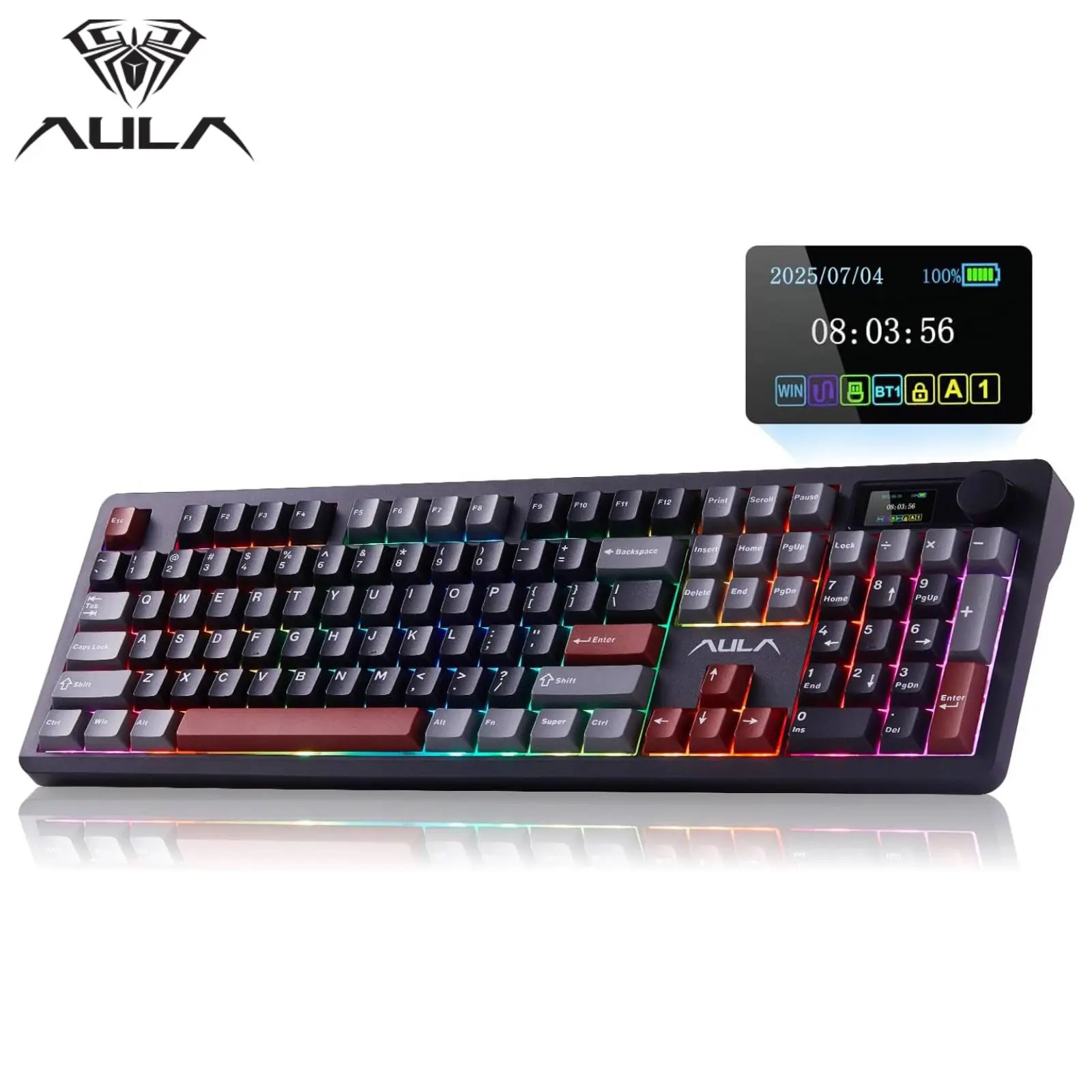 ·Intelligent Display Screen & Knob: The Aula F106pro Wireless keyboard has a built-in intelligent TFT colour display screen,. The HD display and multi-function knob are designed to make it easy to switch and update custom GIF images, volume, date and time, battery status, backlighting and connection modes for easier use. (Note: If your device is not a Windows system, you need to download the software under Windows and keep the wired mode to customize your keyboard)