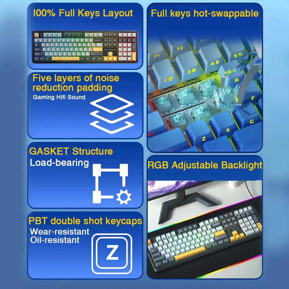 Keyboard sound and color may vary slightly due to recording equipment, lighting conditions, screen settings, and individual perception.