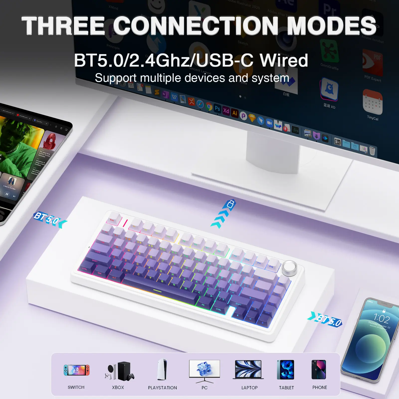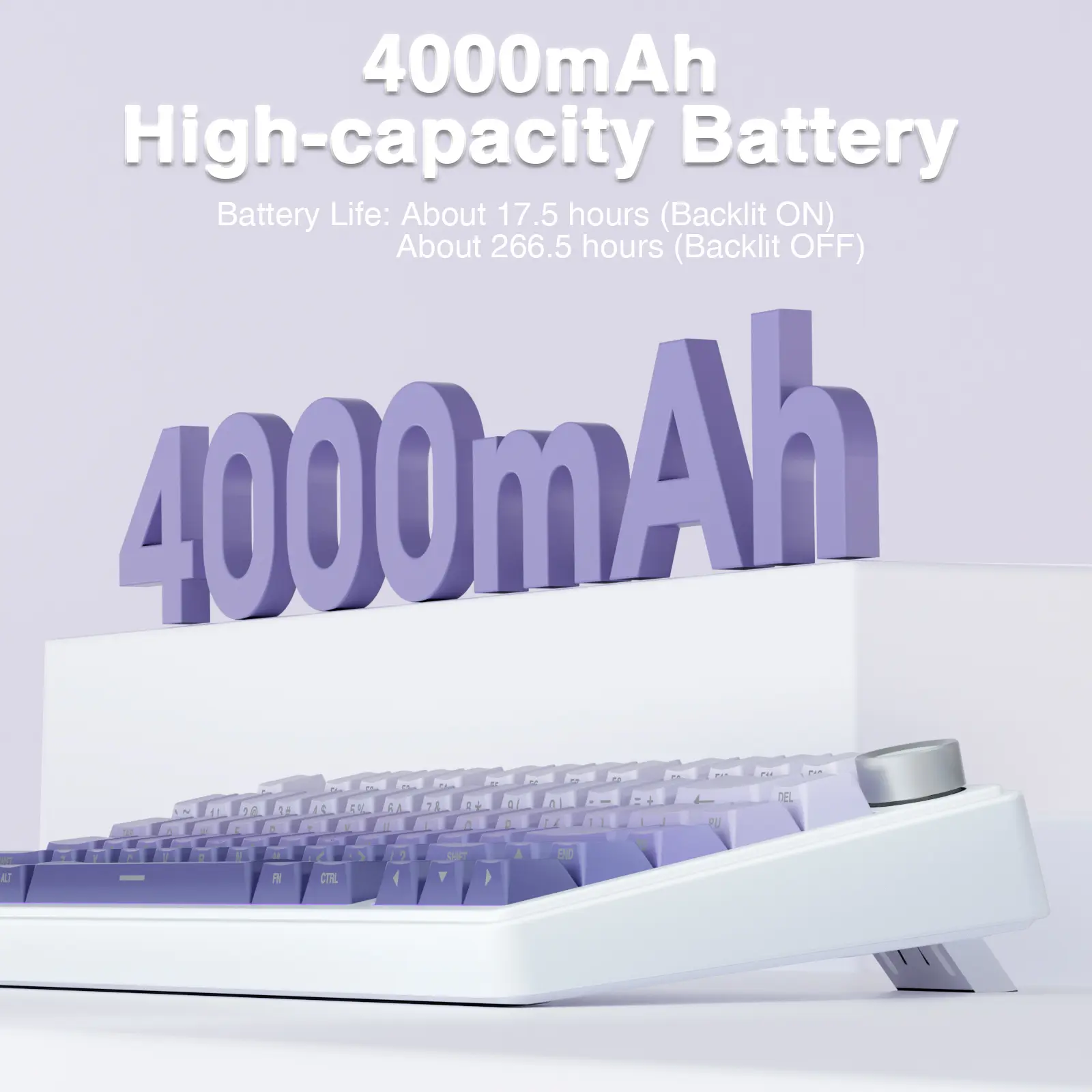 ·Tri-mode Connection Keyboard: AULA F75 Pro wireless mechanical keyboards work with Bluetooth 5.0, 2.4GHz wireless and USB wired connection, can connect up to five devices at the same time, and easily switch by shortcut keys or side button. F75 Pro computer keyboard is suitable for PC, laptops, tablets, mobile phones, PS, XBOX etc, to meet all the needs of users. In addition, the rechargeable keyboard is equipped with a 4000mAh large-capacity battery, which has long-lasting battery life