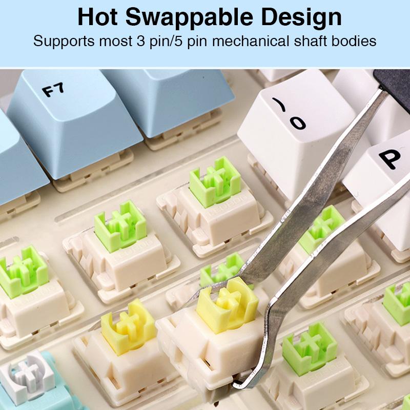 ·Special Feature: Tri-mode Connection Keyboard, Hot-swap Custom Keyboard, Gasket Structure & PCB Single Key Slotting, 3-Mode Connection & Widely CompatibilityTri-mode Connection Keyboard, Hot-swap Custom Keyboard, Gasket Structure & PCB Single Key Slotting, 3-Mode Connection & Widely Compatibility