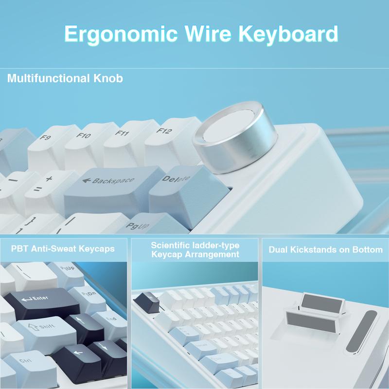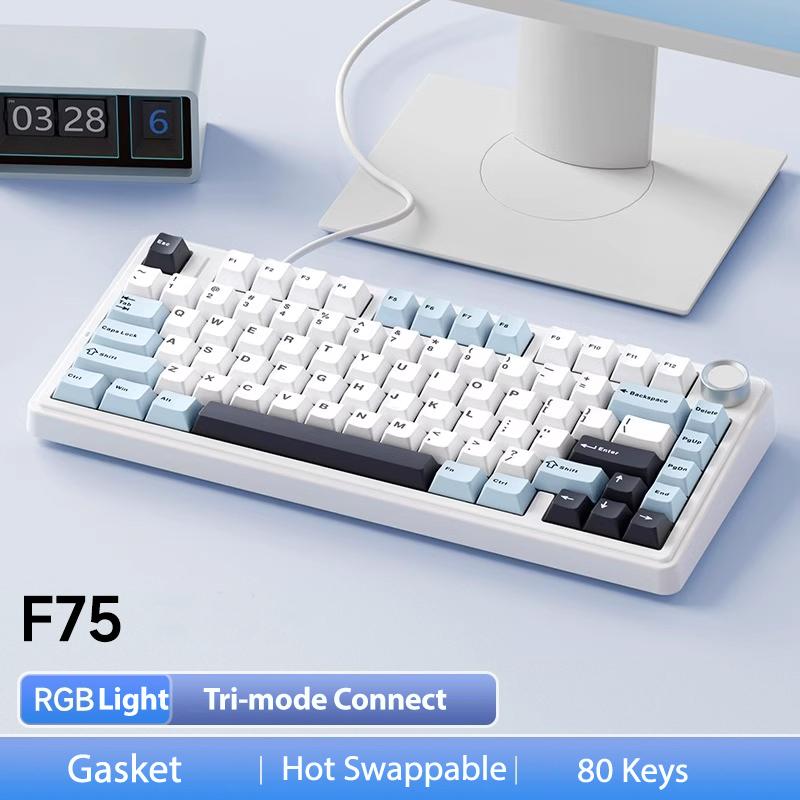·Professional Gaming Keyboard: No matter the outlook, the construction, or the function, F75 mechanical keyboard is definitely a professional gaming keyboard. This 81-key 75% layout compact keyboard can save more desktop space while retaining the necessary arrow keys for gaming. Additionally, with the multi-function knob, you can easily control the backlight and Media. Full-key macro programmable, you can customize the function of single key or key combination function through F75 driver to increase the probability of winning the game and improve the work efficiency. N key rollover, and supports WIN key lock to prevent accidental touches in intense games