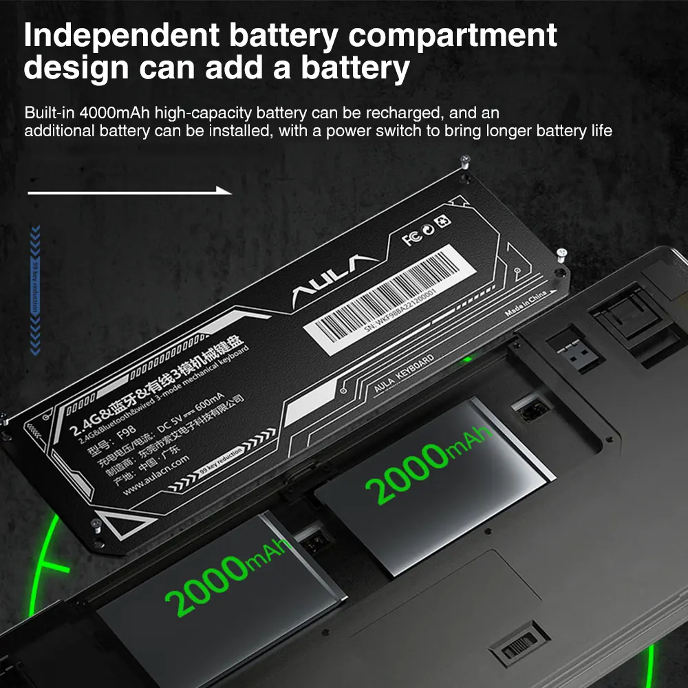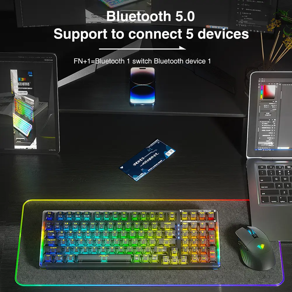 ·Multi-Device Connection: AULA F98 wireless mechanical keyboard provides three connection methods, including BT5.0, 2.4GHz wireless mode, and USB C wired mode. It can be connected to up to five devices at the same time, and switch between them easily by FN+ combination keys. No limits about your keyboard connection to meet the needs of work, gaming, and study