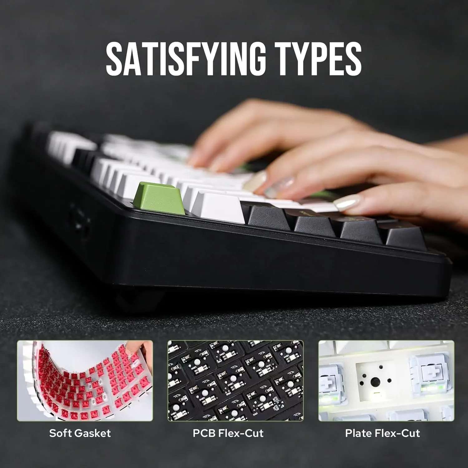 ·Creamy Keyboard: Equipped with 5-layers of sound deadening material to enhance typing sound. The combination of sandwich foam, IXPE switch pads, PET acoustic membrane, bottom foam, and silicone protector pads help eliminate echoes, providing a pure typing sound and a stable, comfortable typing feel