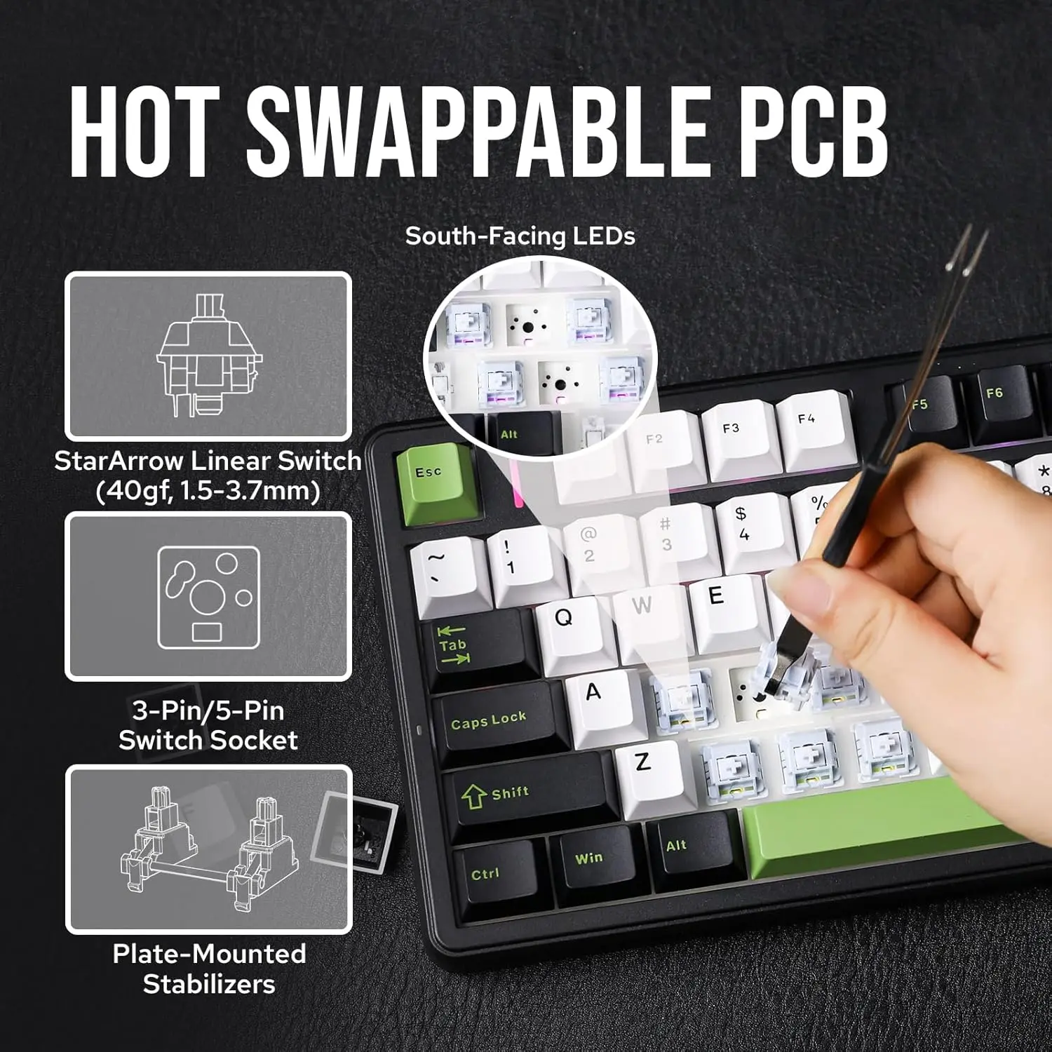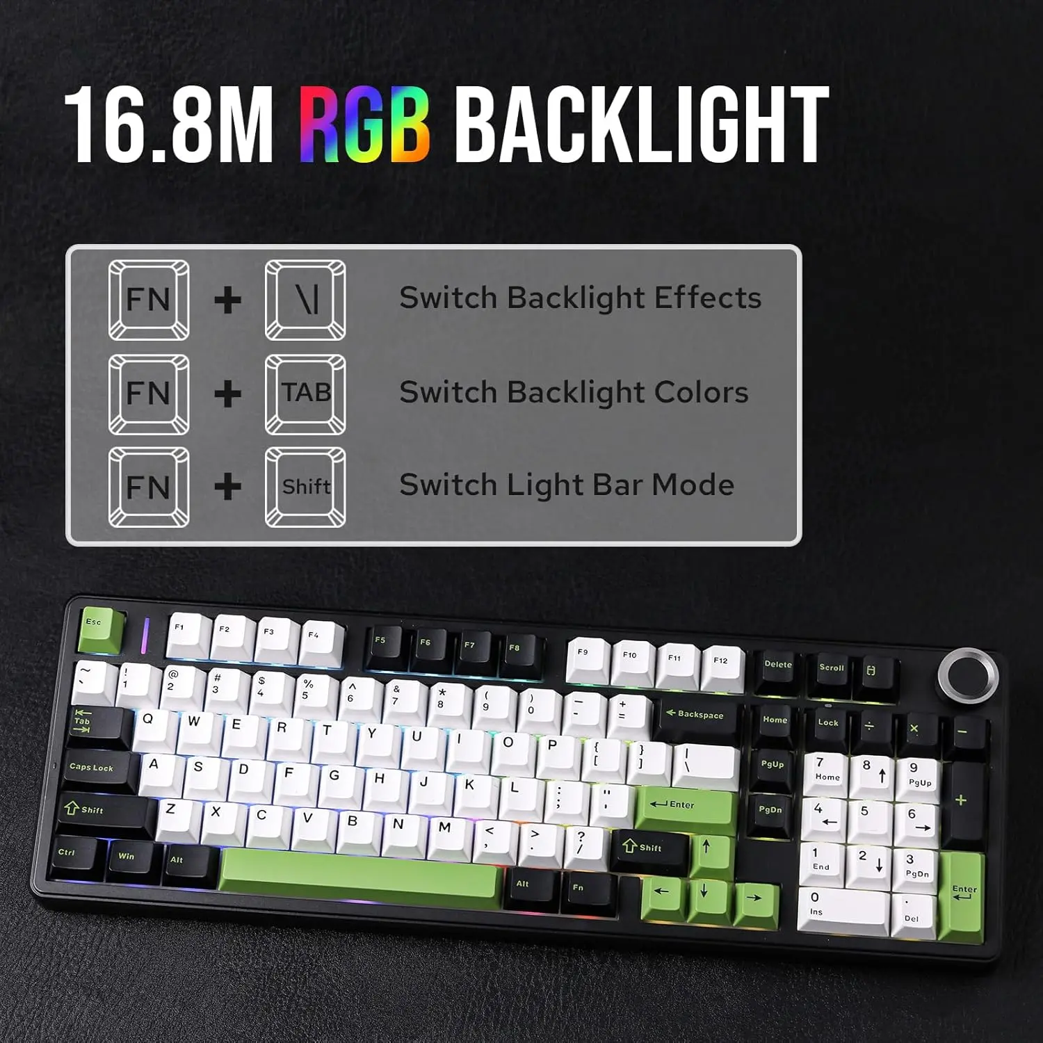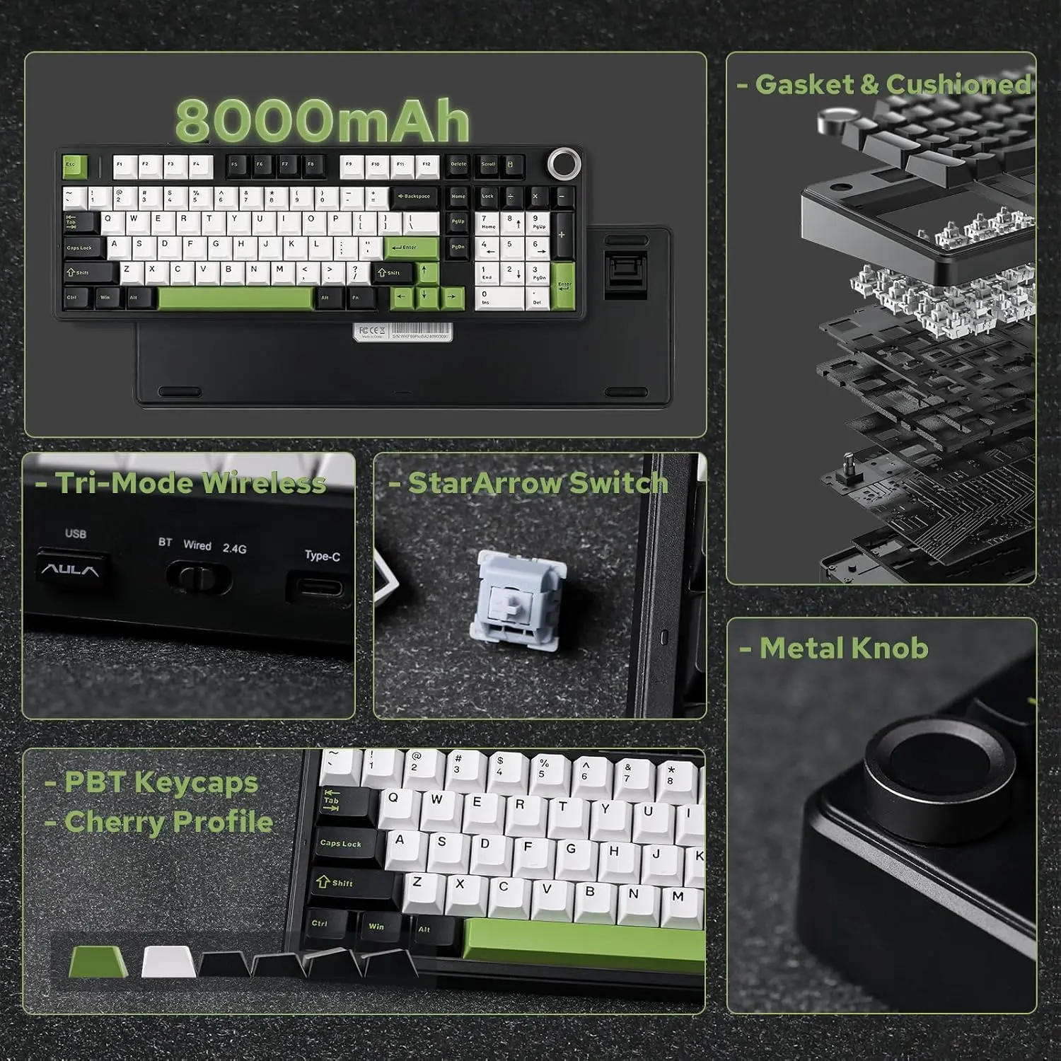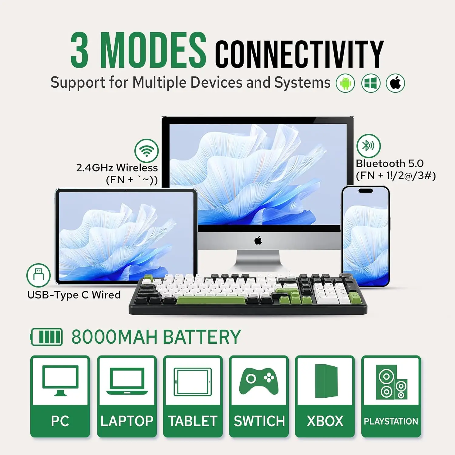 ·Multi-Device Connection: Custom keyboard supports Bluetooth 5.0, 2.4GHz wireless and Type-C wired connectivity, allowing you to seamlessly switch between 5 devices depending on the scenario with the FN+ key combination. 8000mAh battery ensures efficient multitasking and continuous performance in all three connection modes, making it ideal for work and play