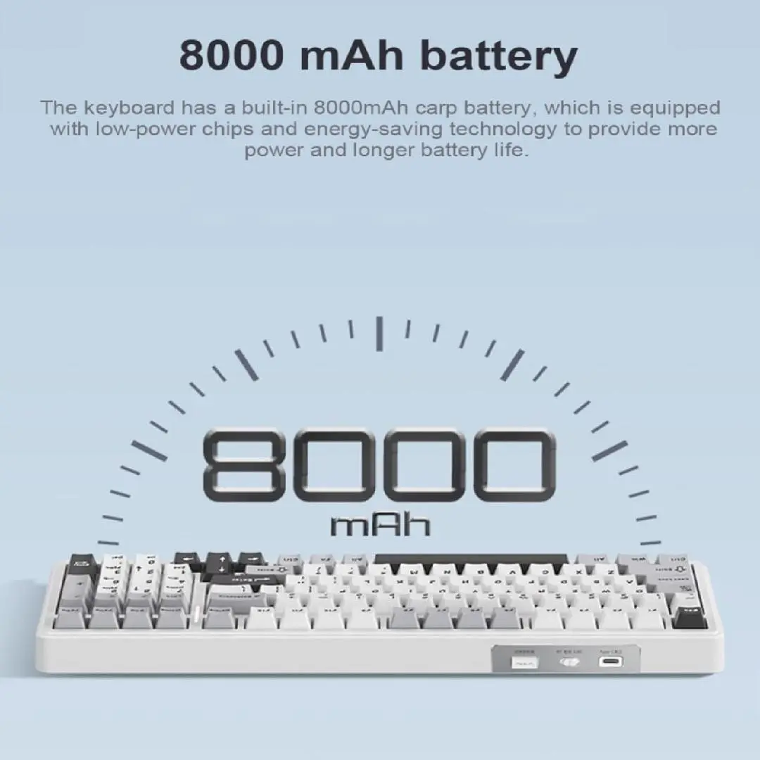 ·Multi-Device Connection: Custom keyboard supports Bluetooth 5.0, 2.4GHz wireless and Type-C wired connectivity, allowing you to seamlessly switch between 5 devices depending on the scenario with the FN+ key combination. 8000mAh battery ensures efficient multitasking and continuous performance in all three connection modes, making it ideal for work and play