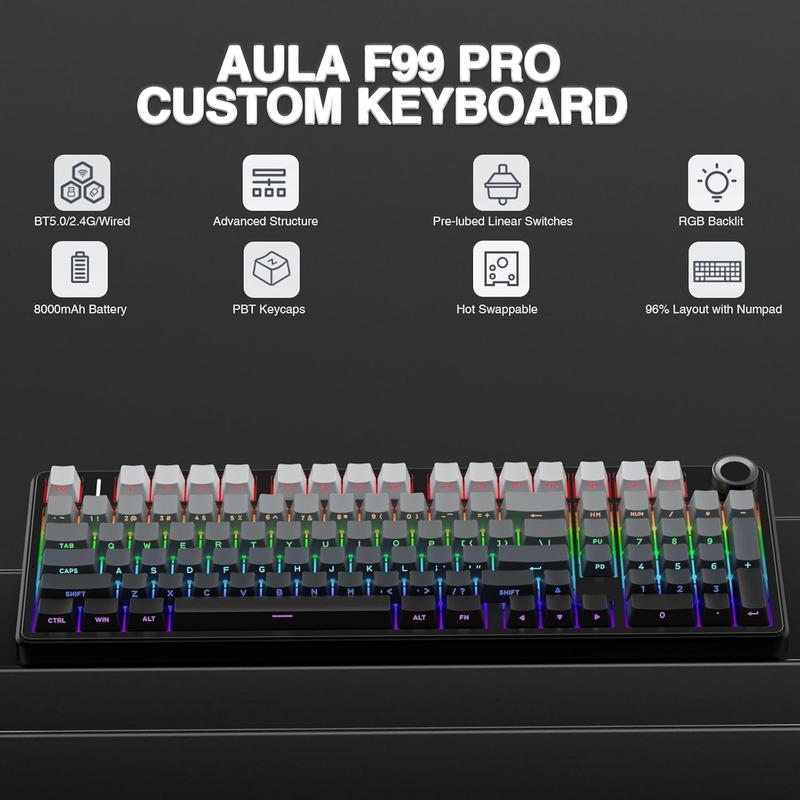 ·Multi-Device Connection: AULA F99 Pro wireless mechanical keyboard provides three connection methods, including BT5.0, 2.4GHz wireless mode, and USB wired mode. It can be connected to up to five devices at the same time, and switch between them easily by FN and key combination keys and side button. No limits about your keyboard connection to meet the needs of work, gaming, and study