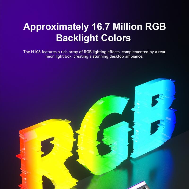 @Aula H108 Full Size Mechanical Keyboard Fun RGB bar on the back of the board Adjustable and customizable RGB functions and key functions  Silent Leobog Feather switches make for a quiet sound Tri-Mode Connective Hot Swappable #Aula #mechanicalkeyboard #gamingkeyboard #keyboardrgb #keebtok