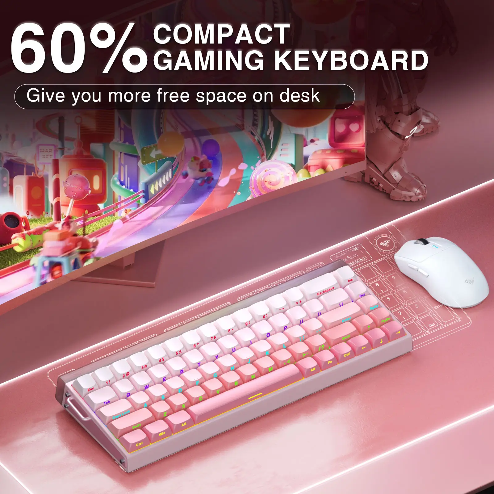 ·60% Wired Gaming Keyboard: No matter the outlook, the construction, or the function, this rapid trigger keyboard is definitely a professional gaming keyboard. This 68-key 60% layout compact keyboard can save more desktop space while retaining the necessary arrow keys for gaming. USB-C wired mode provides gamers with a more stable connection and greatly enhances the gaming experience.